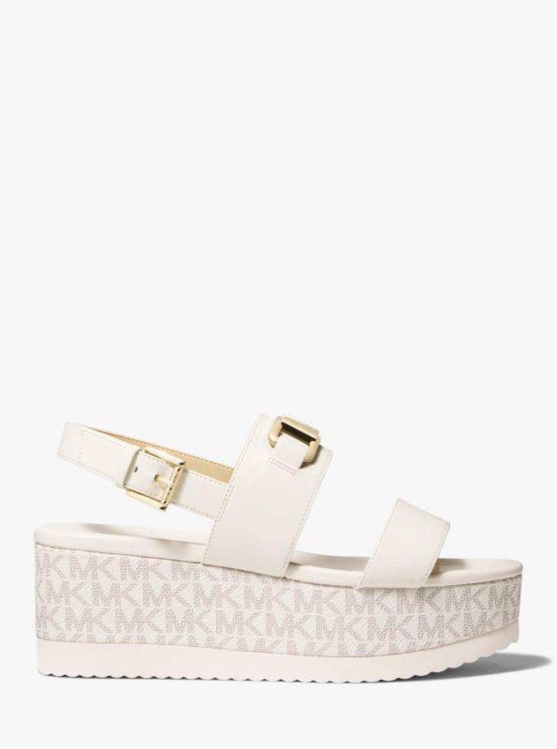 • The Camila sandal is the perfect combination of style and substance. Our iconic logo hardware adds a touch of glamour, while the Signature-print flatform provides a subtle lift. Plus, it will make a chic match when styled with the season’s easy dresses.