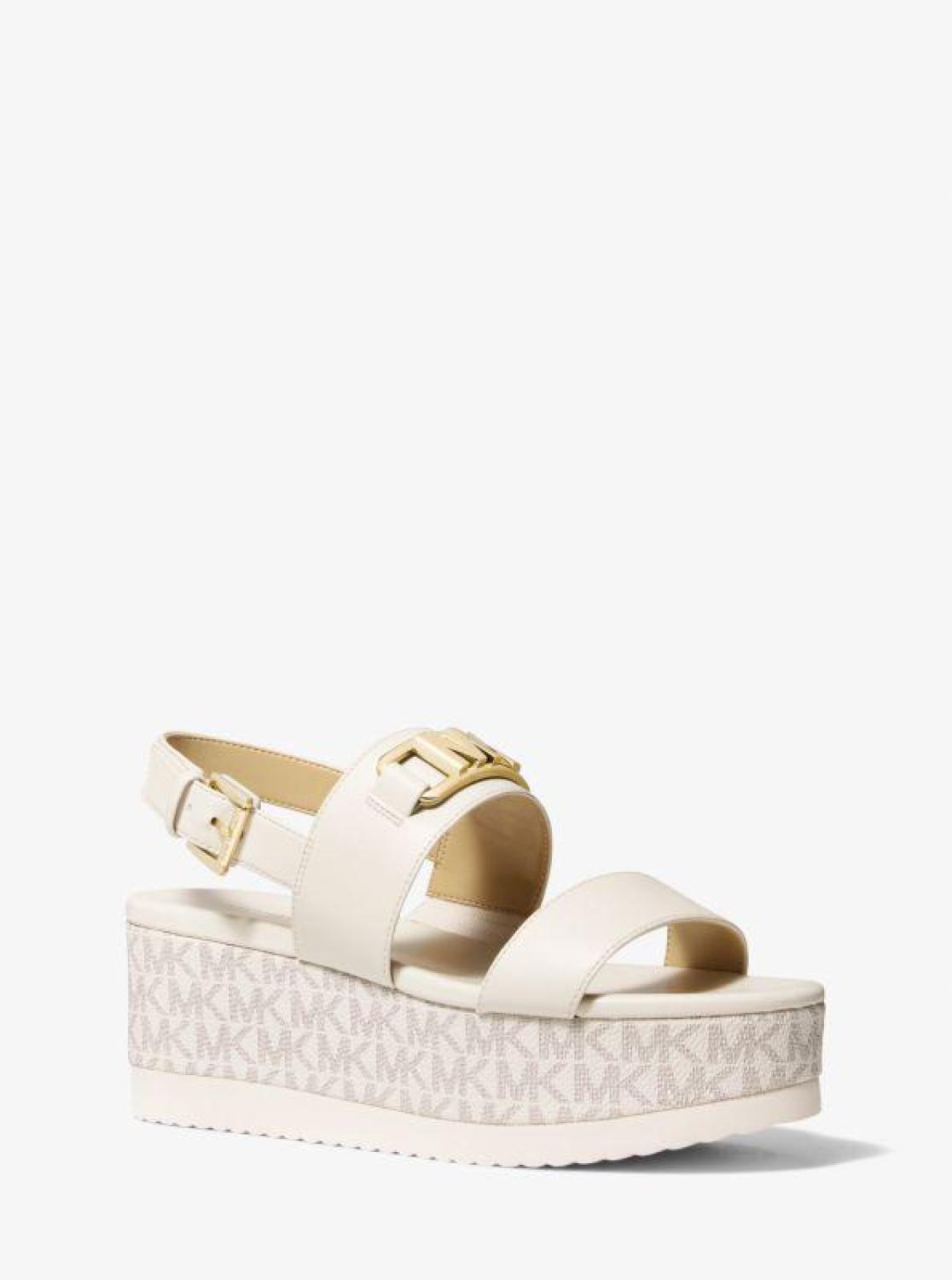 The Camila sandal is the perfect combination of style and substance. Our iconic logo hardware adds a touch of glamour, while the Signature-print flatform provides a subtle lift. Plus, it will make a chic match when styled with the season’s easy dresses.