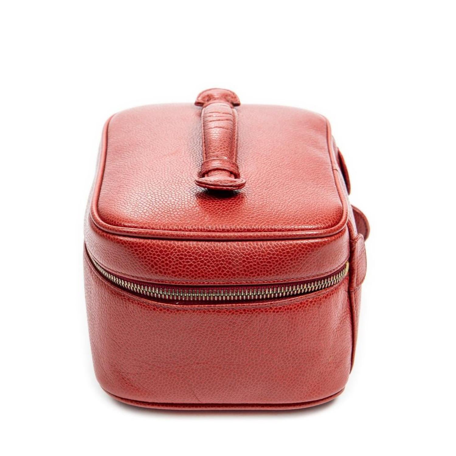 Chanel Handbag in Red Caviar Leather and Gold hardware. Dimensions - 19*10*14cm. Serial number - 3520733 (1994-1996). Inclusions - Sticker, Dustbag, Box.