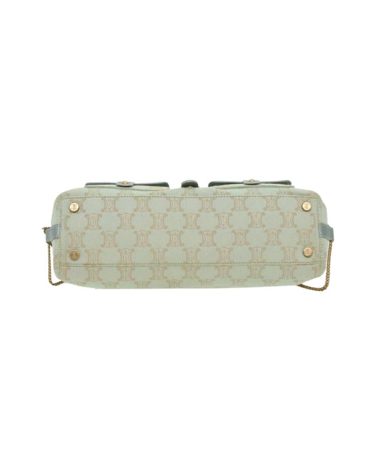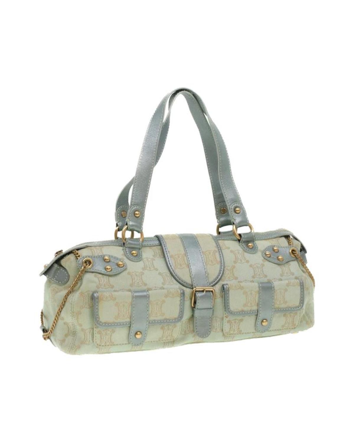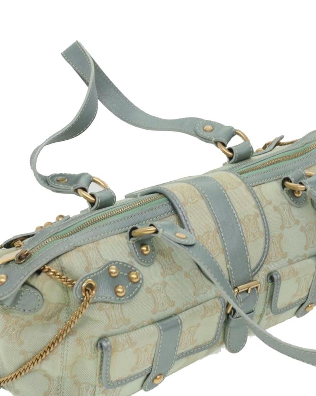 CELINE Paris Macadam Canvas Shoulder Bag Light Blue Auth 35668