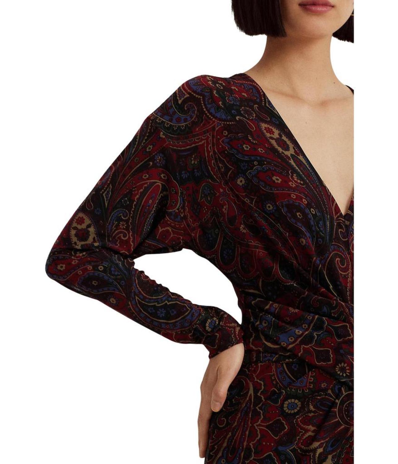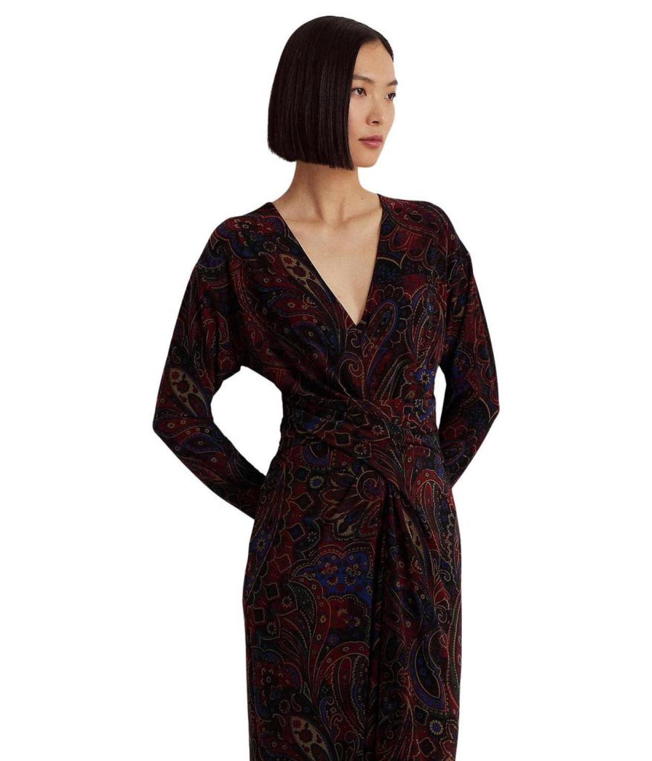 Checked Paisley Twist-Front Jersey Dress