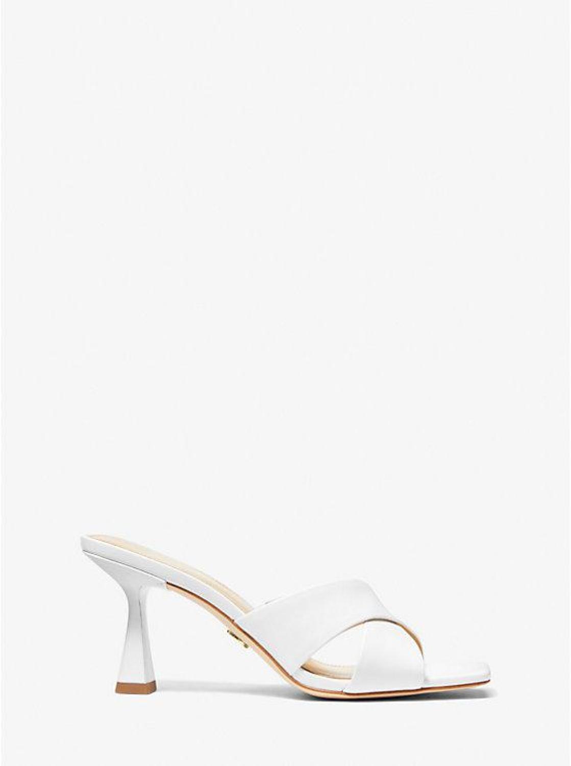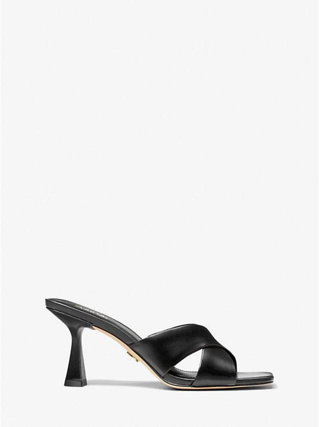 • Our Clara mules are defined by their sculptural, fluted heels. Updated for the season, they feature leather crossover straps and retro square toes. Wear yours with just about anything.