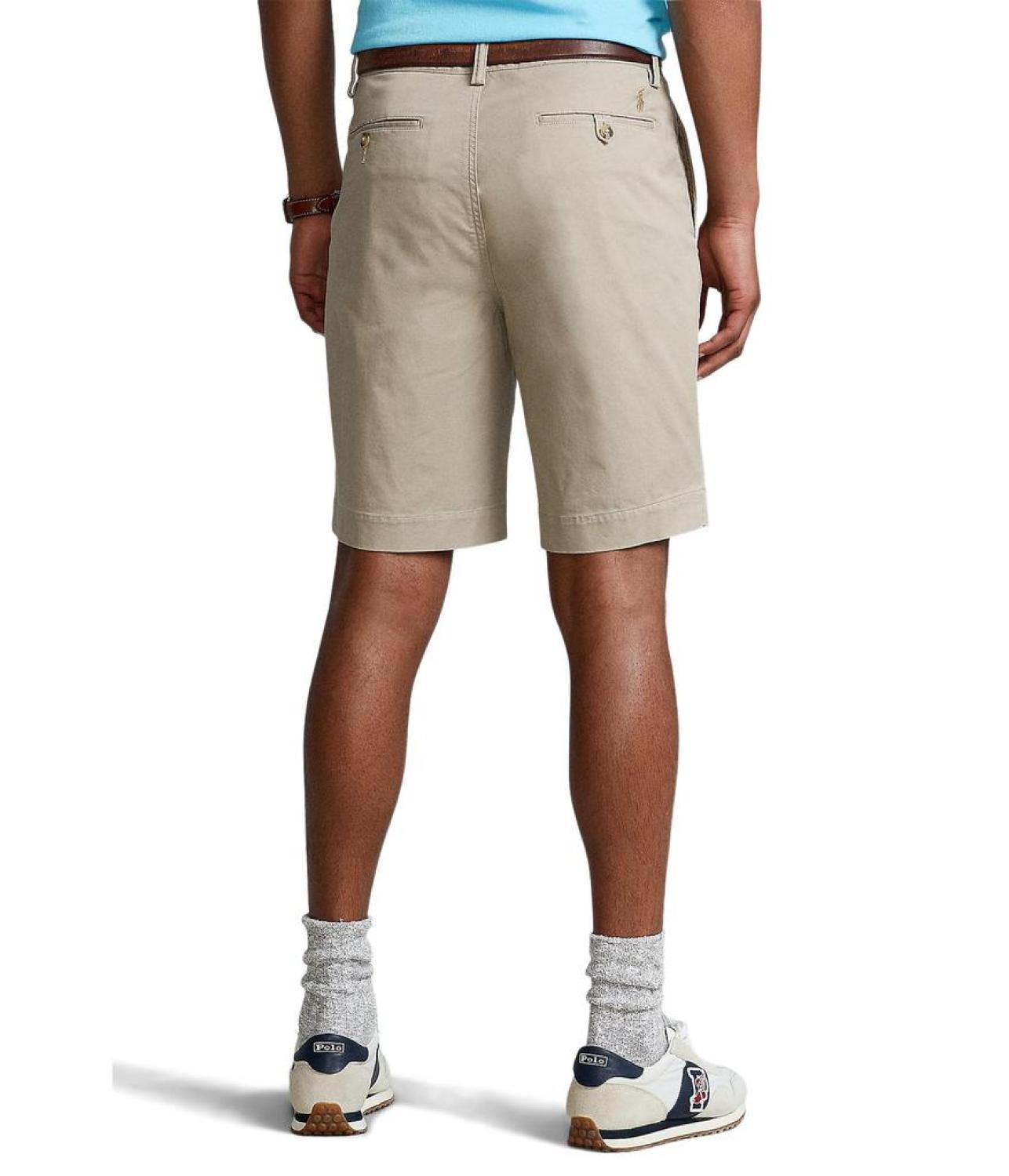 Cleverly crafted in a range of timeless tones, the Polo Ralph Lauren® Classic Fit Stretch Chino Shorts are a gentleman's best friend. The classic-fit short is crafted from a lightweight twill woven with added stretch for comfortable wear throughout the weekend. Classic fit short sits at the waist and eased through the leg. Regular-rise waist with belt loops throughout waist. Hand pockets at the sides. Button-through rear welt pockets. Signature Pony Player embroidery above back pocket. Button-front and a zip-fly closure. 97% cotton, 3% elastane. Machine wash, tumble dry. Imported. Product measurements were taken using size 34, inseam 9. Please note that measurements may vary by size. Measurements: Waist Measurement: 35 in Outseam: 19 1/2 in Inseam: 9 in Front Rise: 11 1/2 in Back Rise: 16 in Leg Opening: 23 in-