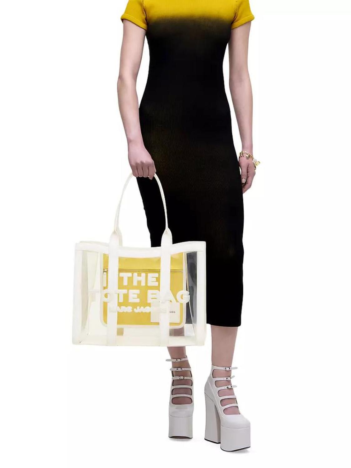 • This large tote from Marc Jacobs is crafted of PVC, offering a modern, transparent aesthetic. The style is lined with cotton and features a generous handle drop for comfortable carrying.