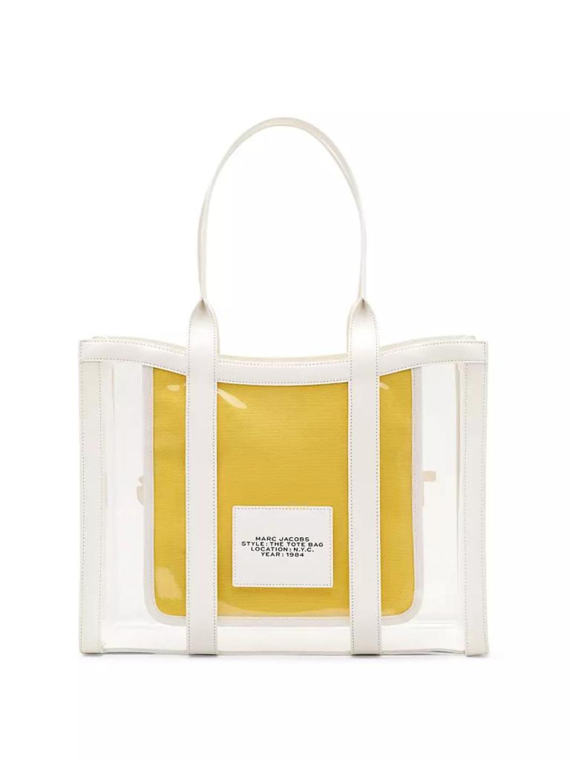 This large tote from Marc Jacobs is crafted of PVC, offering a modern, transparent aesthetic. The style is lined with cotton and features a generous handle drop for comfortable carrying.Two top handlesPVCLining: cottonImportedSIZEAbout 16.5"W x 21.25"H x 7.5"DTwo top handles: about 9.84" drop