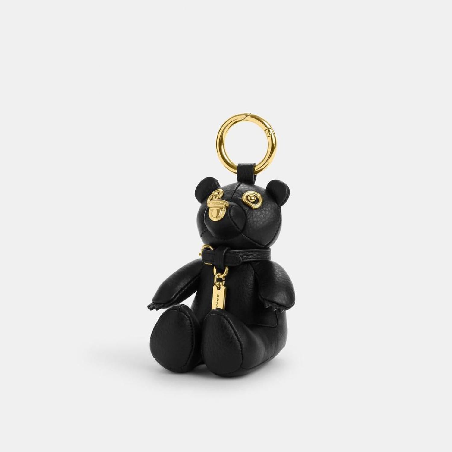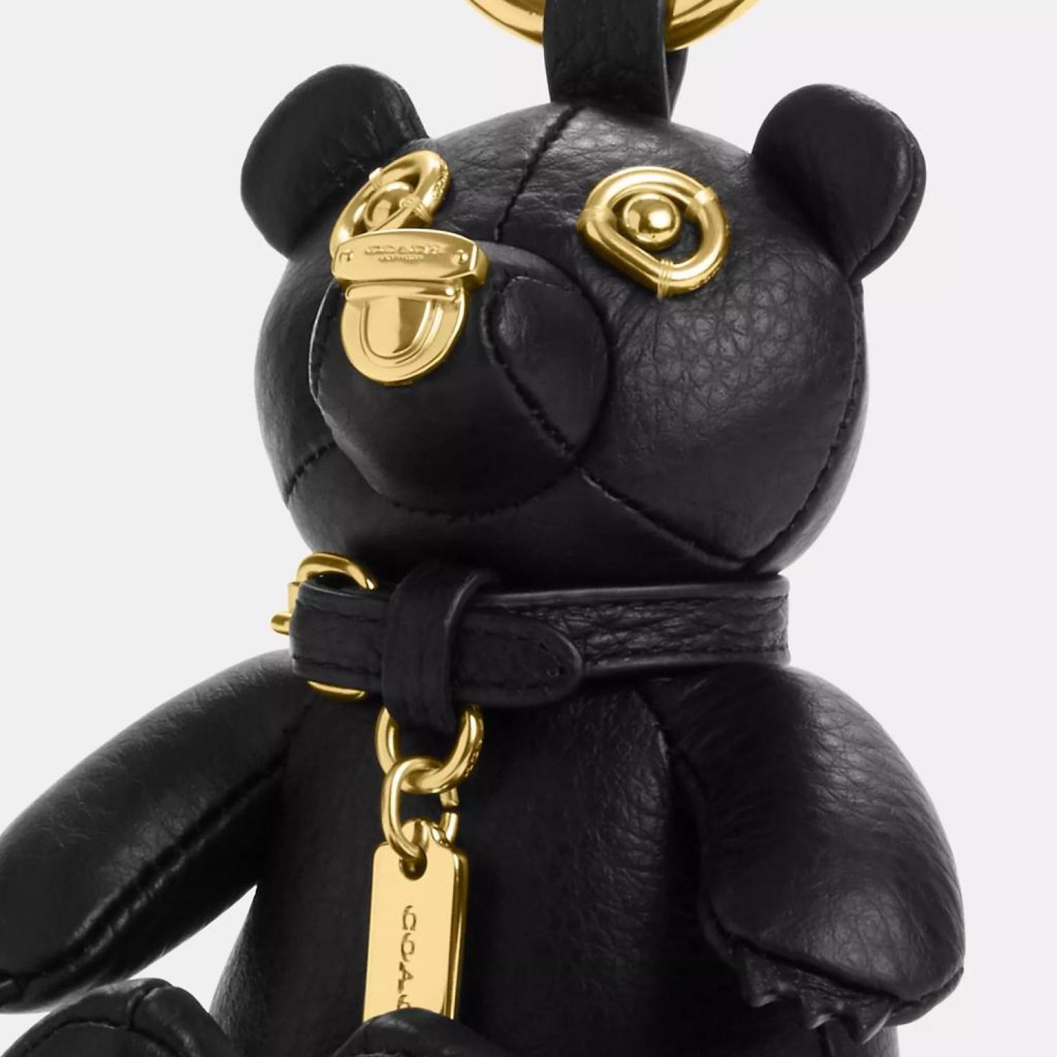 Refined pebble leather Attached hinged split key ring 3 1/2 (L) x 4 (H) Style No. CP369 | Coach Outlet Bear Bag Charm - Black