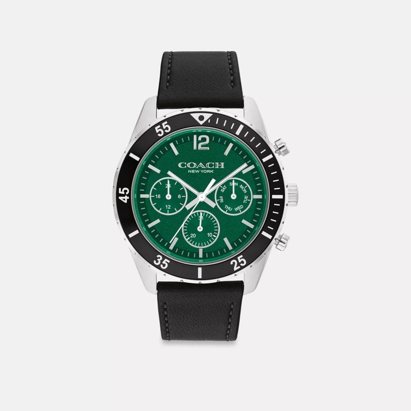 Stainless steel case and leather strap Approx. case diameter - 44mm Mineral crystal Quartz movement Buckle closure Water-resistant to 99 feet Style No. CS629 | Coach Outlet Cole Watch, 44 Mm - Brown
