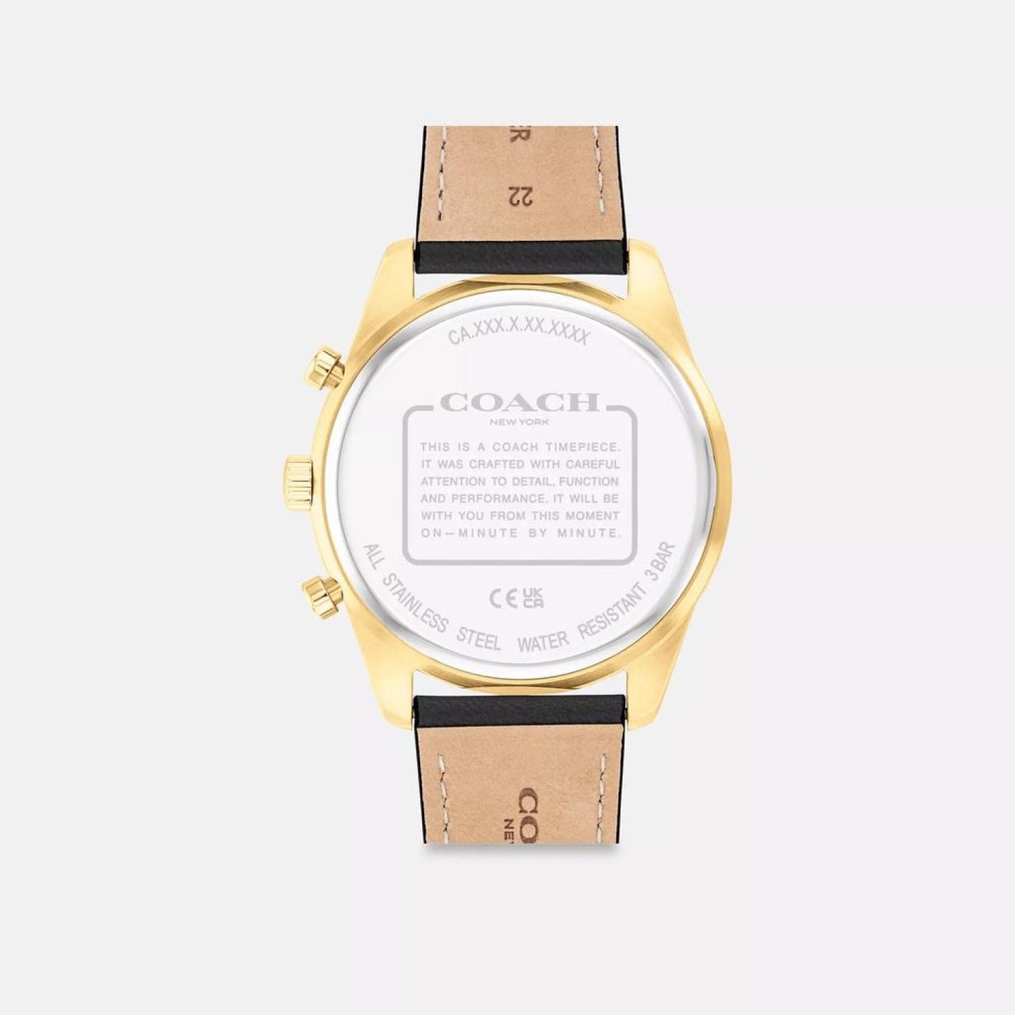 Gold tone case and leather strap Approx. case diameter - 44mm Mineral crystal Quartz movement Buckle closure Water-resistant to 99 feet Style No. CS633 | Coach Outlet Cole Watch, 44 Mm - Black