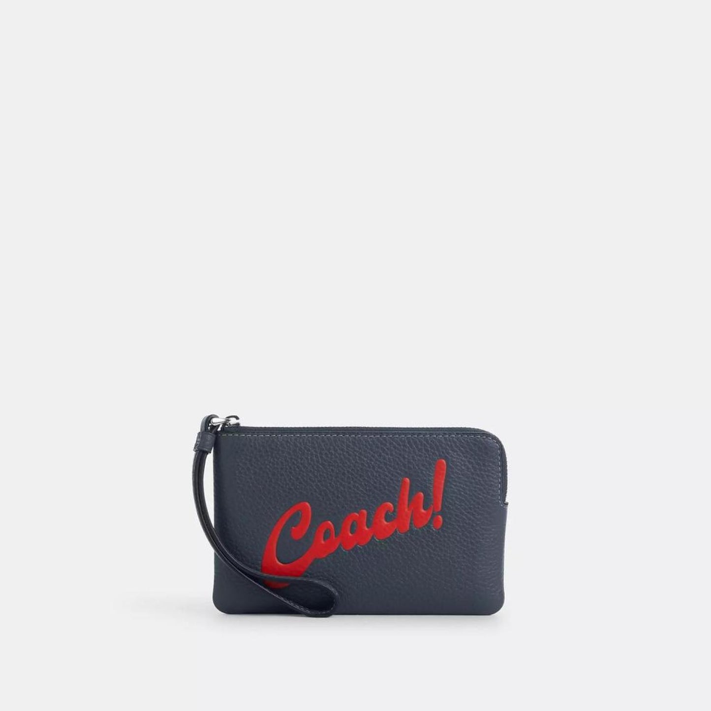 Refined pebble leather Two credit card slots Zip-top closure fabric lining Wrist strap attached 6 1/4 (L) x 4 (H) x 1/2 (W) Style No. CU253 | Coach Outlet Corner Zip Wristlet With Coach Graphic - Blue