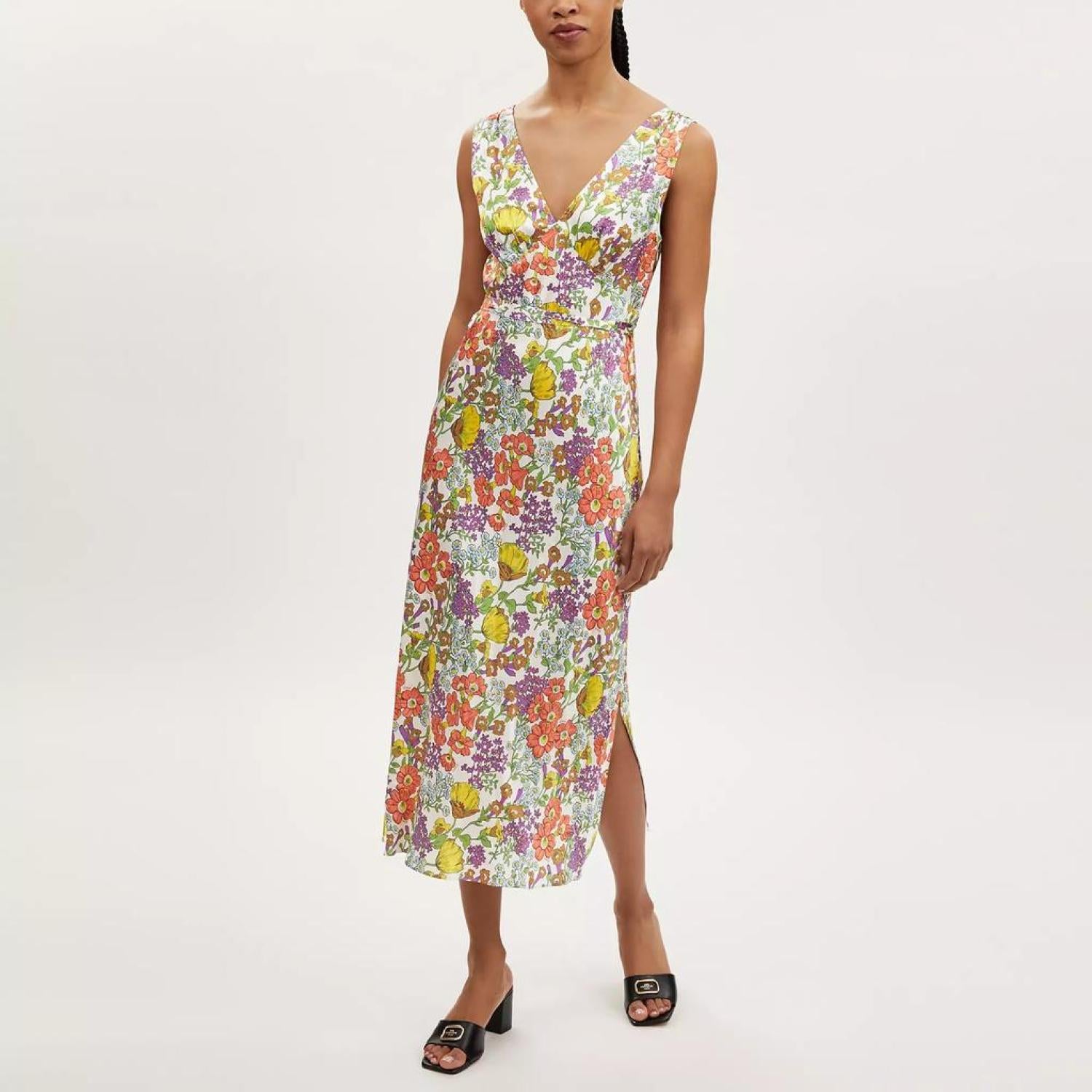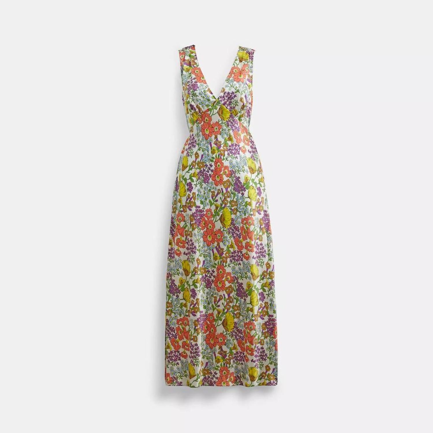100% silk Zip closure Length - 51 Dry clean Model is 5'10 (178cm) chest 31 (79cm) waist 24 (61cm) hips 35 (89cm) and wears a size S Style No. CQ778 | Coach Outlet Garden Floral Print Midi Dress, Size - X-Large