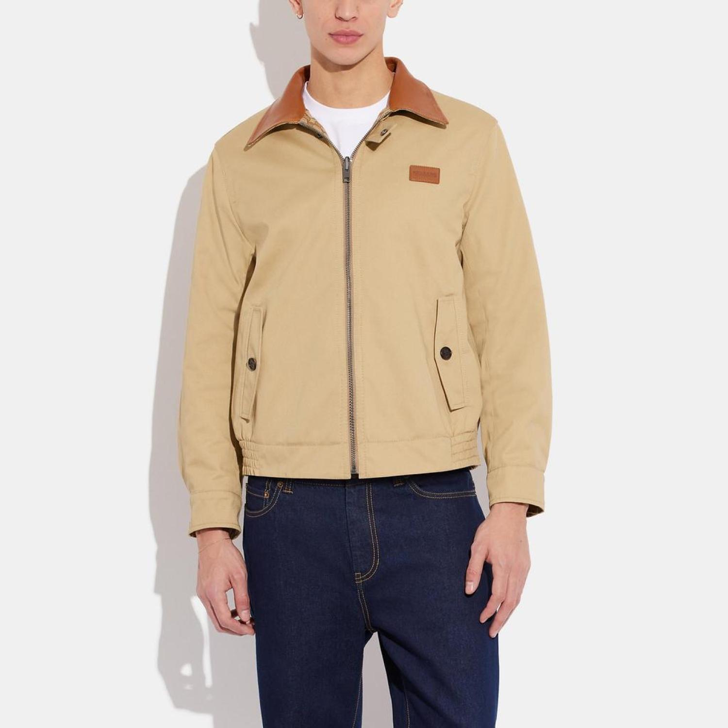 54% cotton 46% polyester Lining - 61% cotton 39% polyester Leather details Zip closure Slip and flap pockets Reversible Length - 26 1/2 Dry clean Model is 6'2 (188cm) and wears a size M Style No. CG691 | Coach Outlet Heritage Reversible Jacket - Brown, Size - X-Small