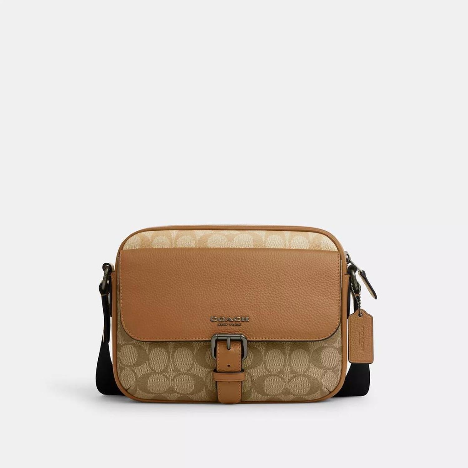 • Signature coated canvas and refined pebble leather Inside zip and multifunction pockets Zip closure fabric lining Outside flap and slip pockets Adjustable strap with 25 drop for shoulder or crossbody wear 9 (L) x 7 (H) x 2 1/2 (W) Style No. CR339 | Coach Outlet Hudson Crossbody Bag In Colorblock Signature Canvas - Brown