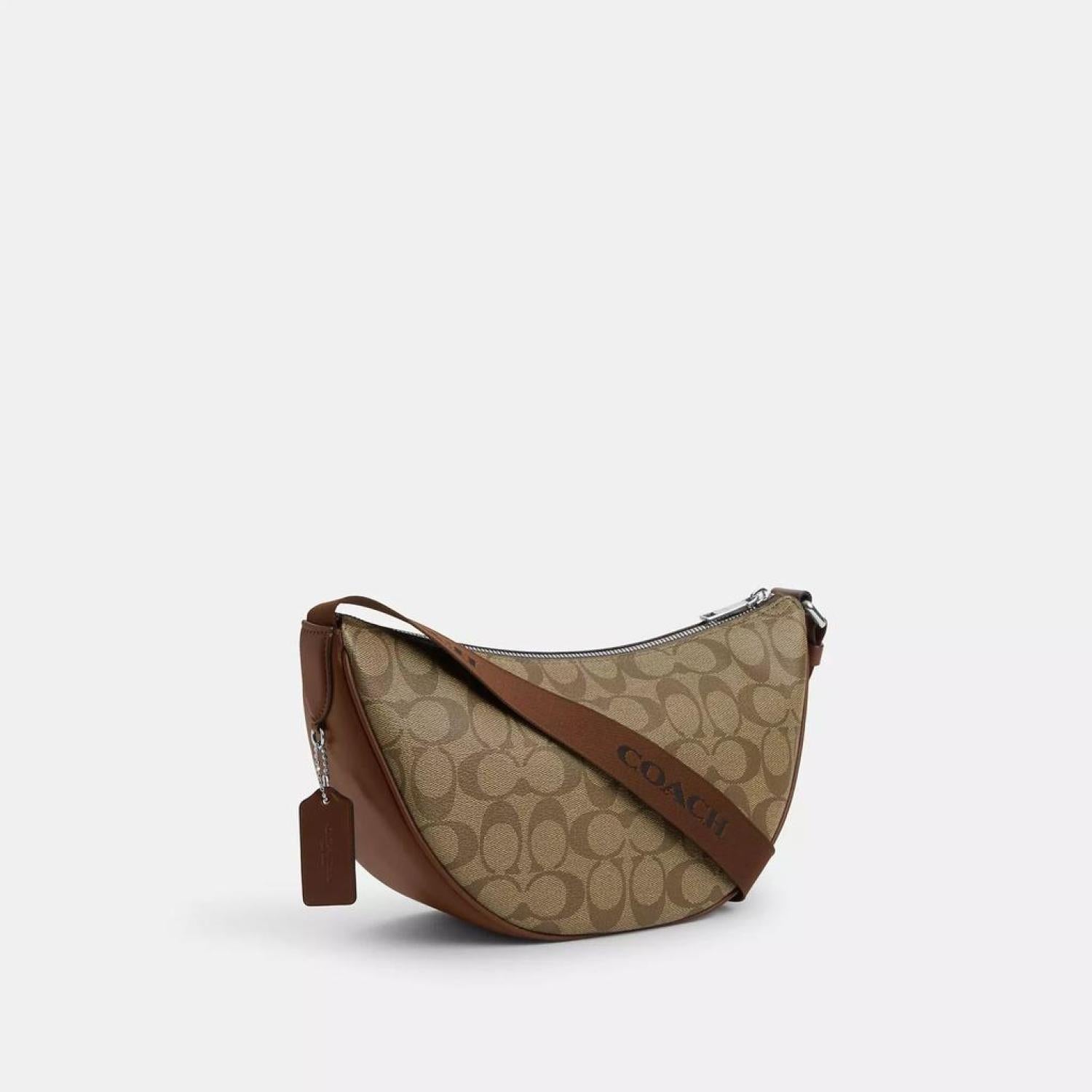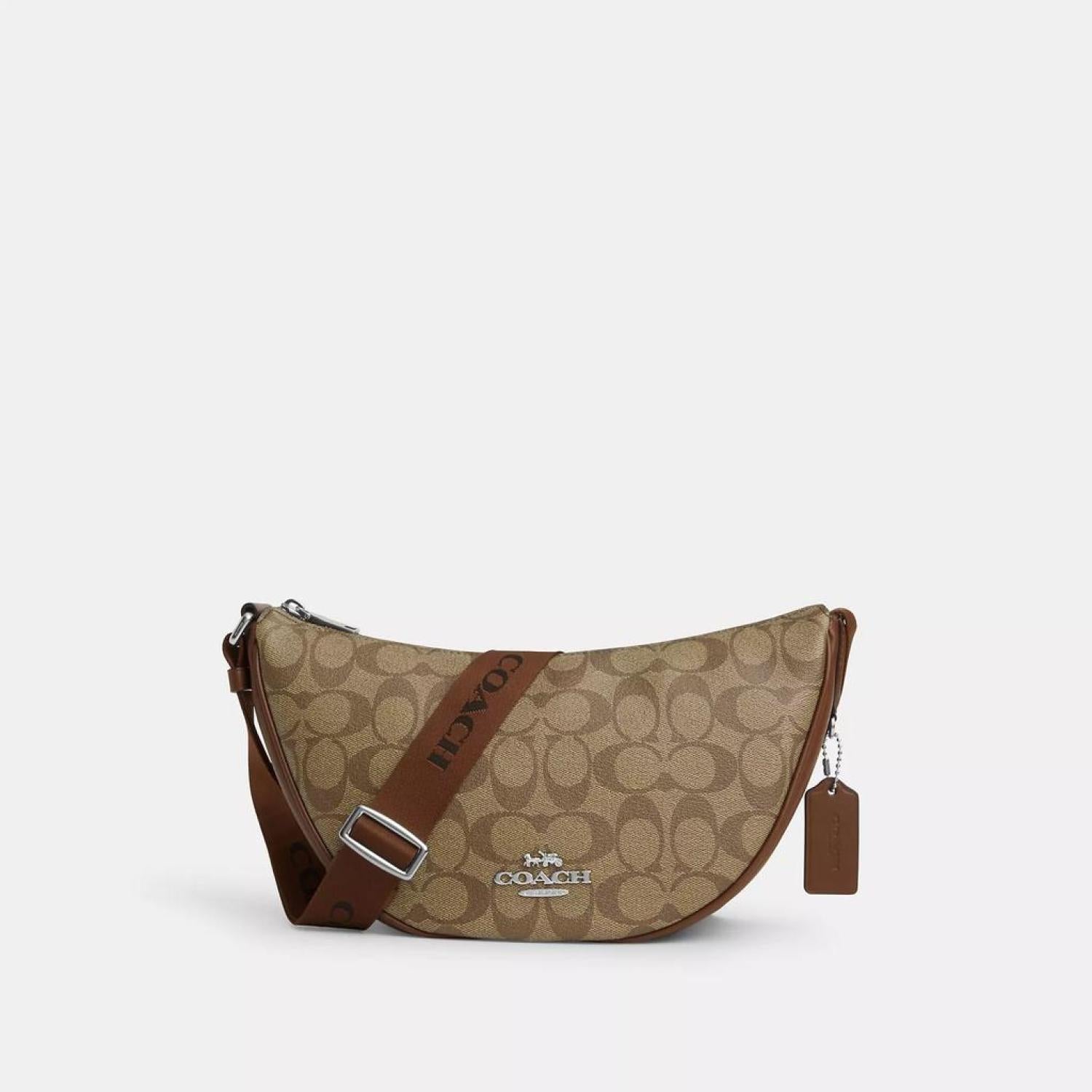 Signature coated canvas and refined calf leather Inside zip pocket Zip-top closure fabric lining Adjustable strap with 20 3/4 drop for shoulder or crossbody wear 11 1/2 (L) x 6 (H) x 4 1/2 (W) Style No. CT643 | Coach Outlet Pace Shoulder Bag In Signature Canvas - Brown