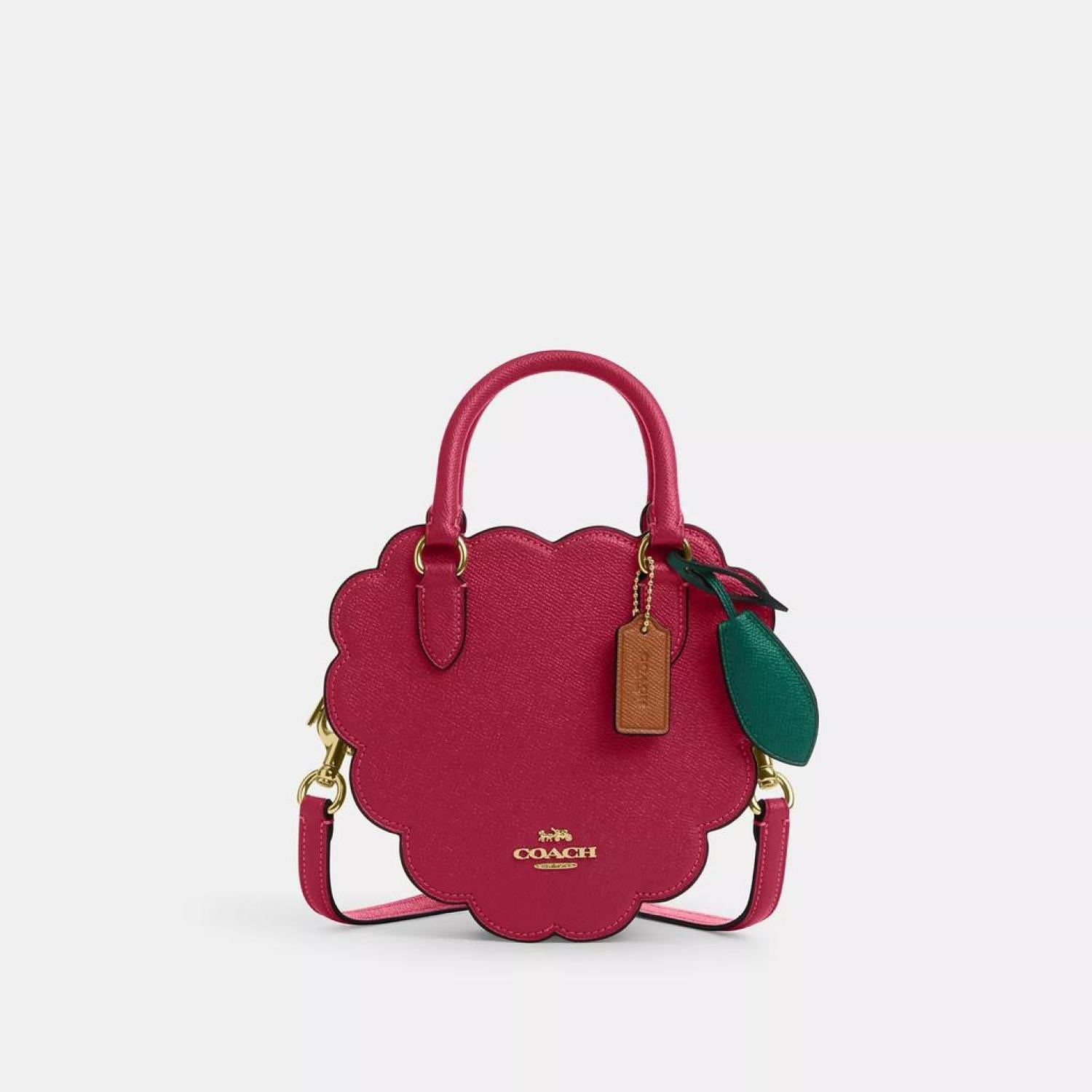 • Crossgrain leather Zip closure fabric lining Handles with 3 drop Detachable strap with 22 drop for shoulder or crossbody wear 7 1/2 (L) x 7 (H) x 2 (W) Style No. CR252 | Coach Outlet Raspberry Crossbody - Pink