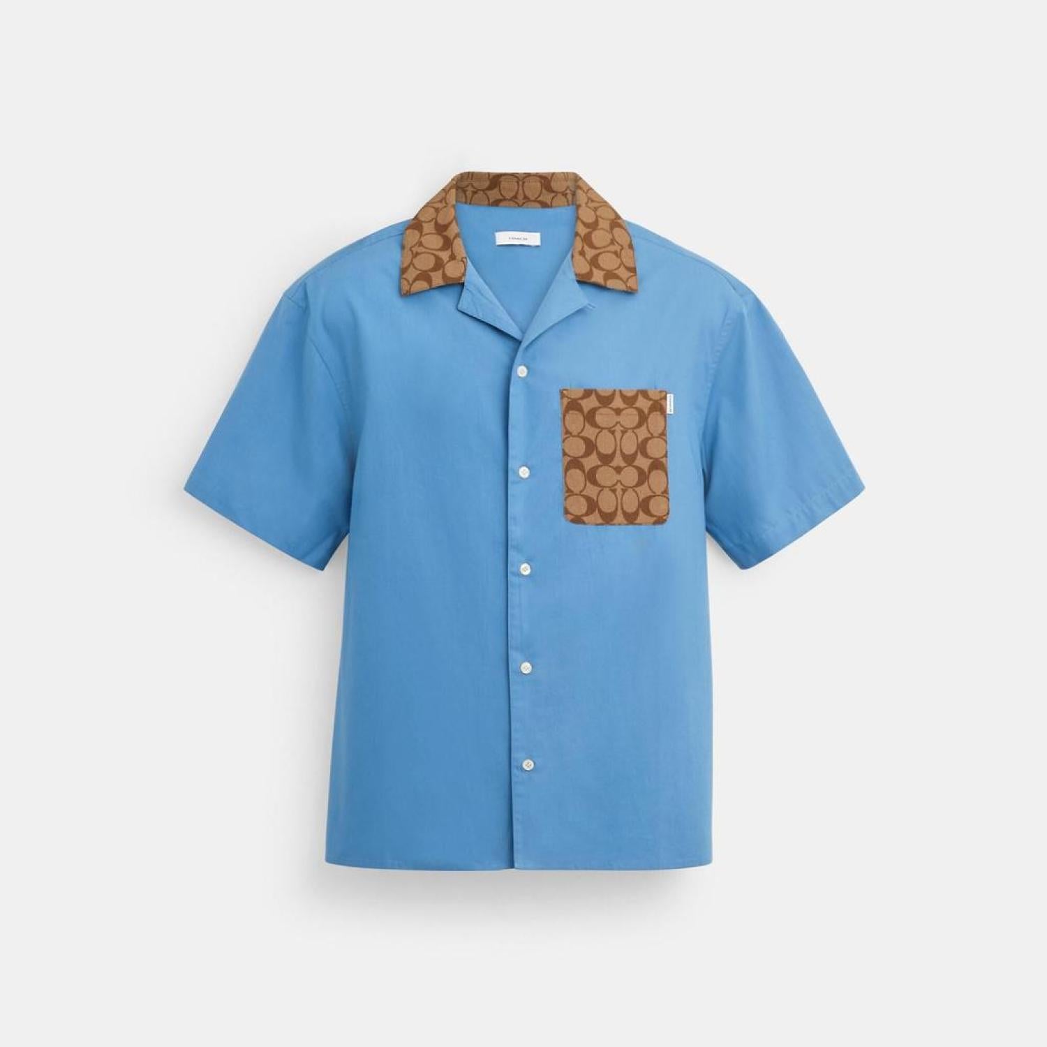 • 100% cotton Button closure Chest pocket Length - 28 3/4 Model is 6'2 (188cm) and wears a size M Style No. CI509 | Coach Outlet Signature Colorblock Camp Shirt - Multi/Blue, Size - X-Large