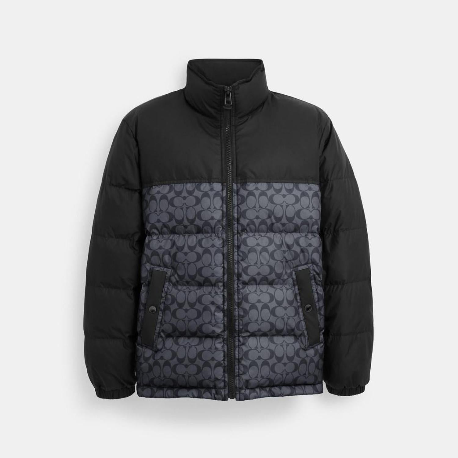 • 100% polyester Lining - 100% polyester Fill 1 - 90% down 10% feathers Fill 2 - 100% polyester Zip closure Snap pockets Water-resistant Length - 28 1/2 Model is 6'2 (188cm) and wears a size M Style No. CK954 | Coach Outlet Signature Down Jacket - Brown, Size - 2X-Large