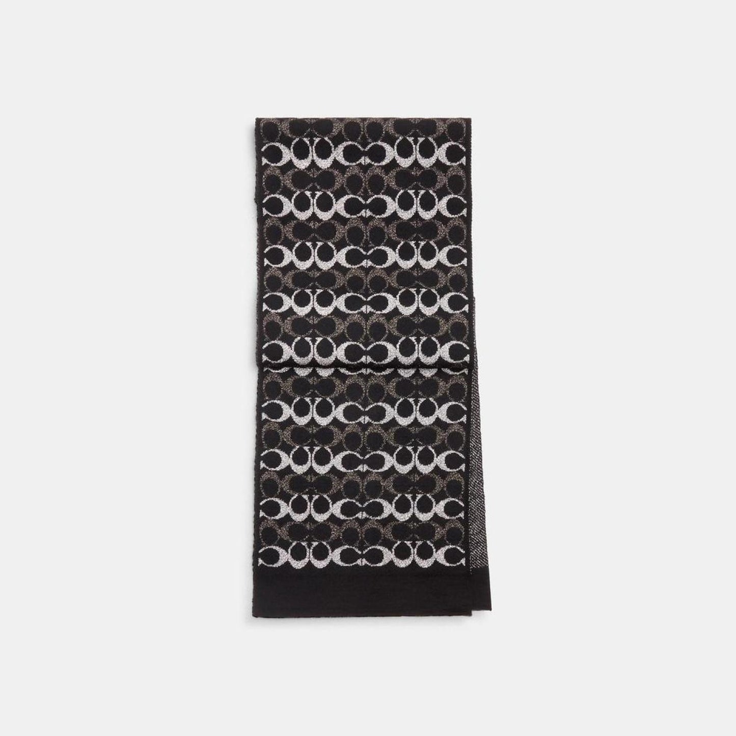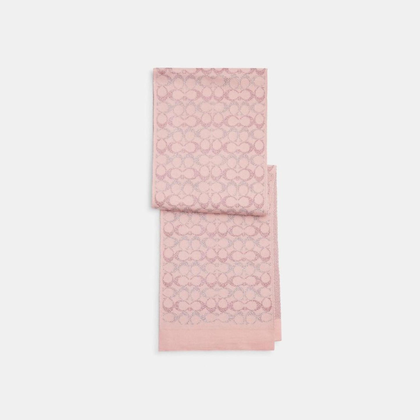100% merino wool Metallic threads 72 x 10 Style No. CK719 | Coach Outlet Signature Metallic Knit Scarf - Pink