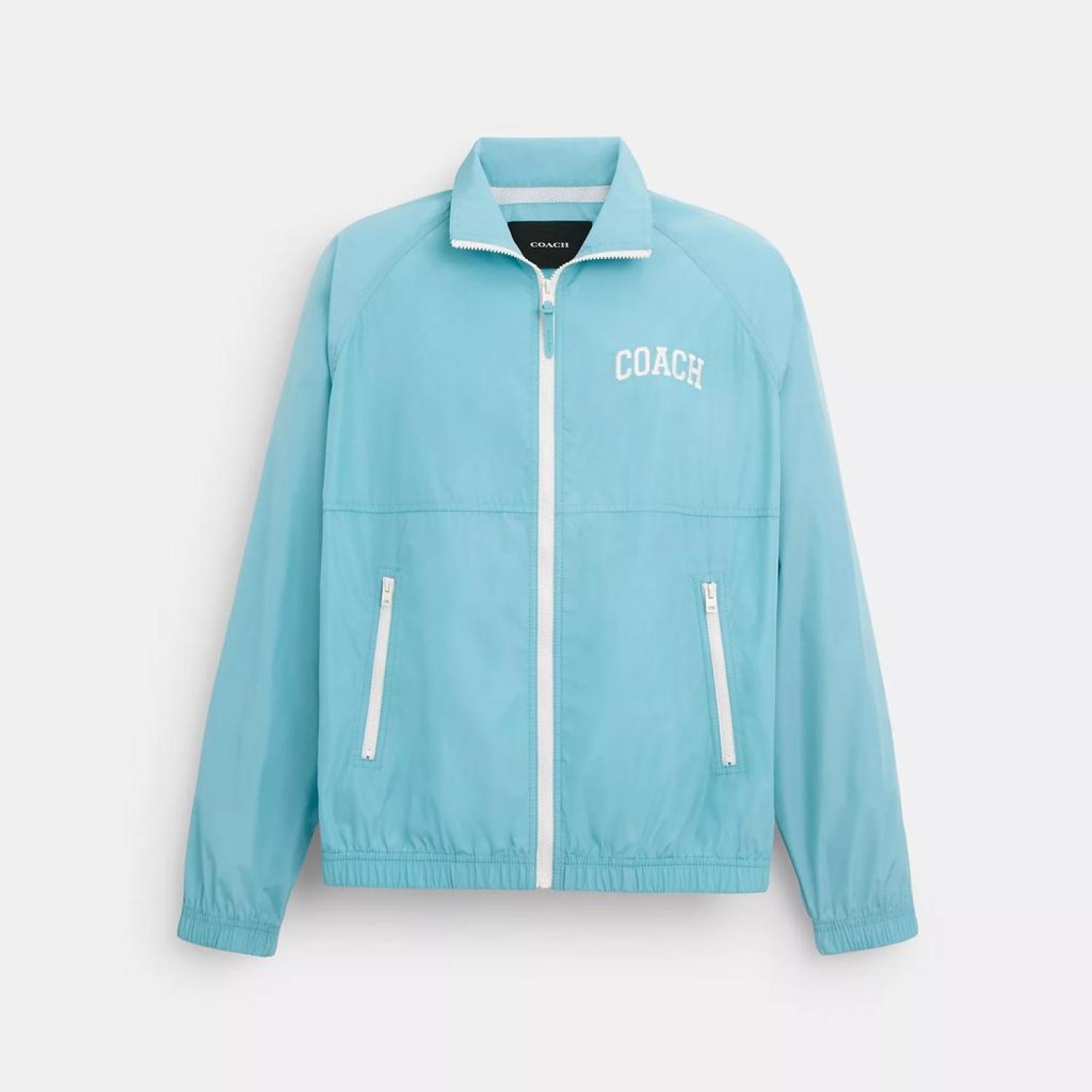 • 100% recycled polyester Mesh lining - 100% recycled polyester Zip closure Zip pockets Water-resistant Length - 26 3/4 Machine wash Model is 6'2 (188cm) and wears a size M Style No. CR483 | Coach Outlet Track Jacket - Blue, Size - Medium