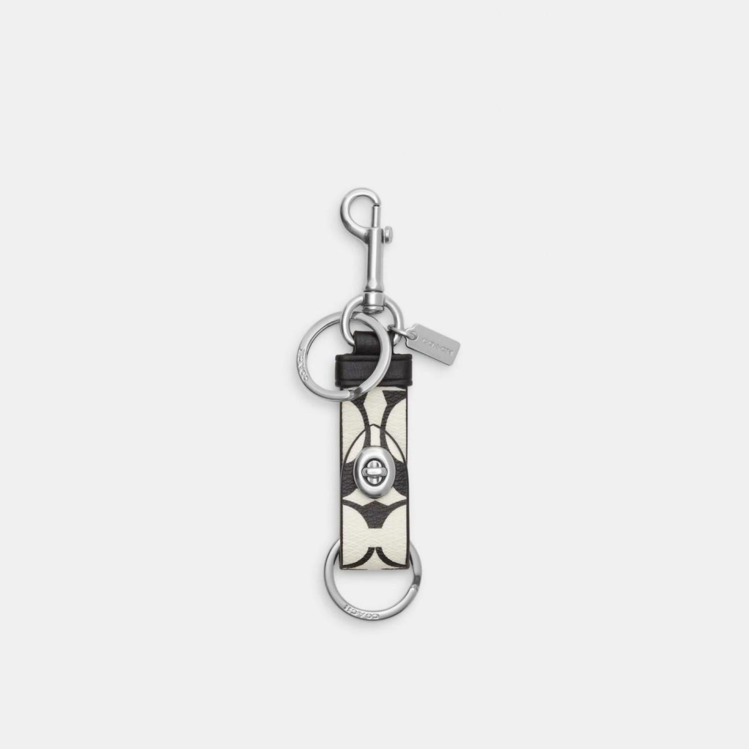 Signature coated canvas and smooth leather Snap closure Attached split key rings and dogleash clip 3/4 (L) x 2 1/2 (H) Style No. CP362 | Coach Outlet Trigger Snap Bag Charm In Signature Canvas - White