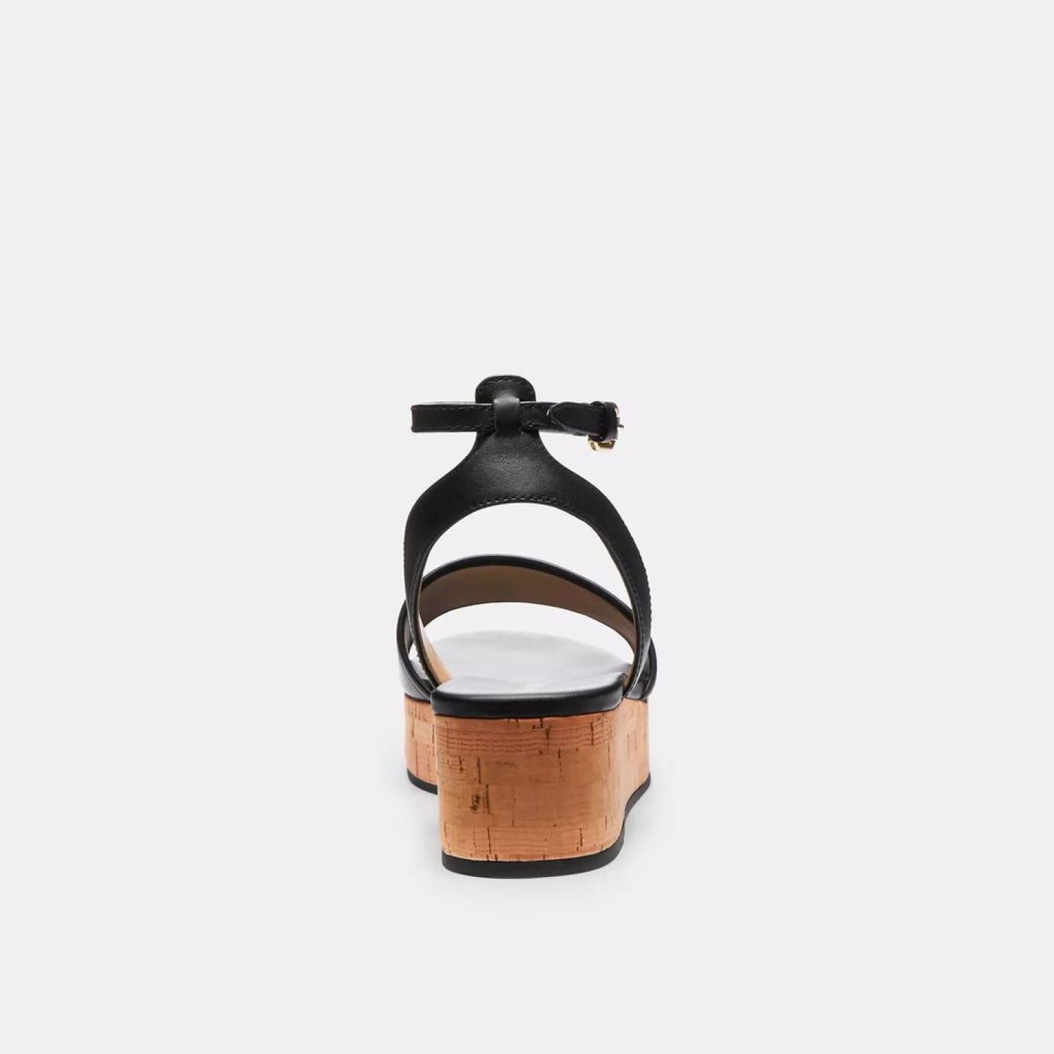 • Leather and man-made leather upper Man-made leather lining and footbed Rubber outsole Buckle closure 2 platform Style No. CR884 | Coach Outlet Tullie Sandal - Black, Size - 7