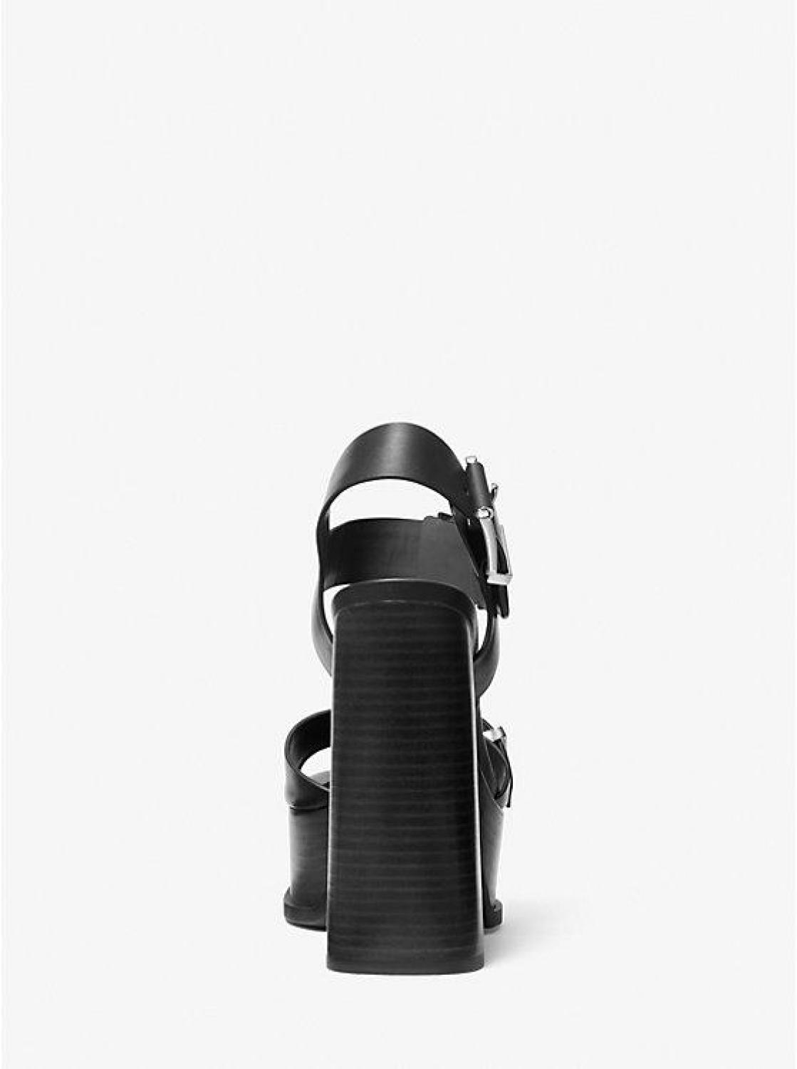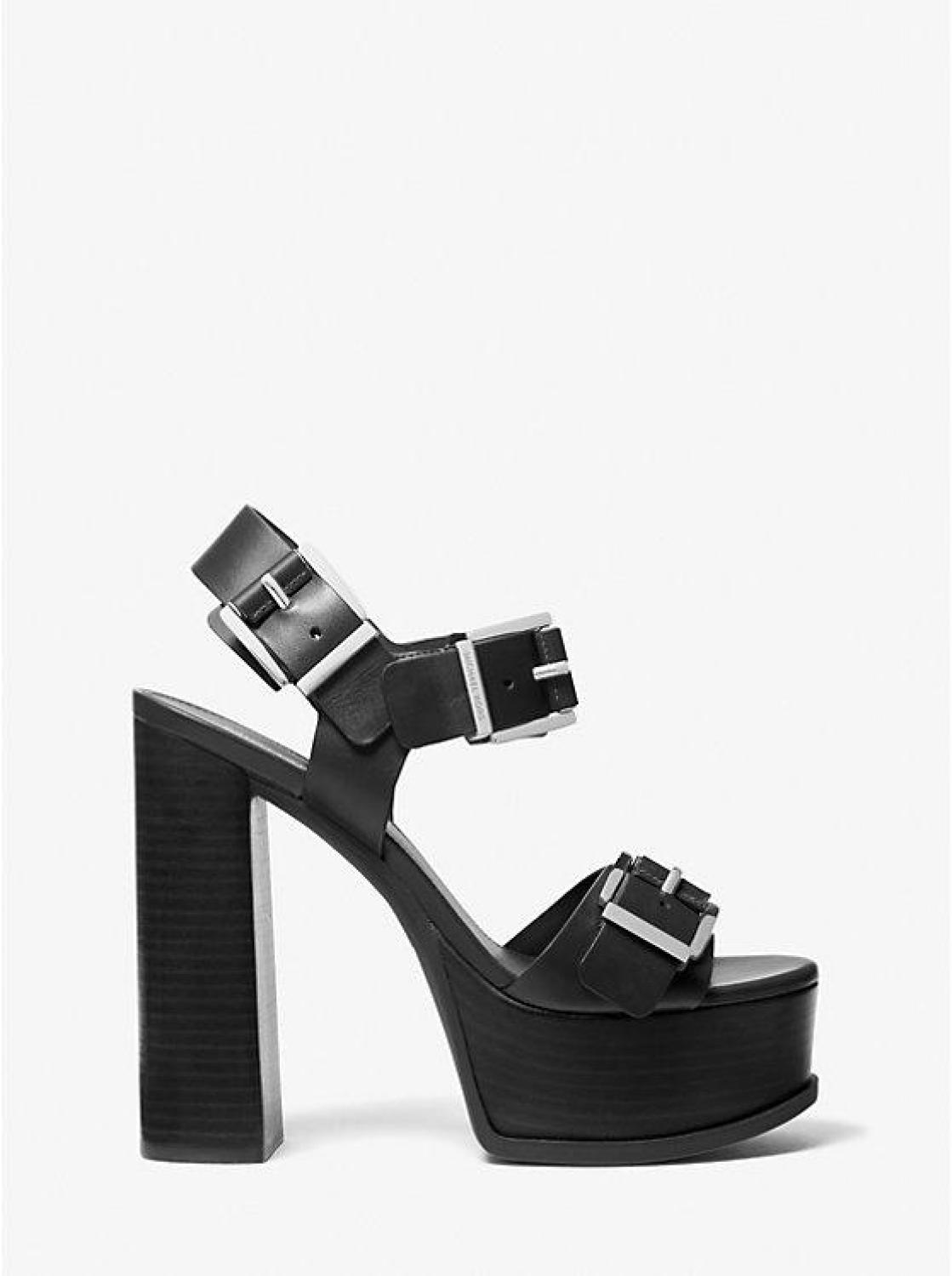 • Made of supple leather, these extra-high Colby platform sandals are defined by utilitarian buckles that create an element of ‘70s-inspired tough-luxe appeal. Thick straps and a sturdy block heel make them comfortable to wear all night.