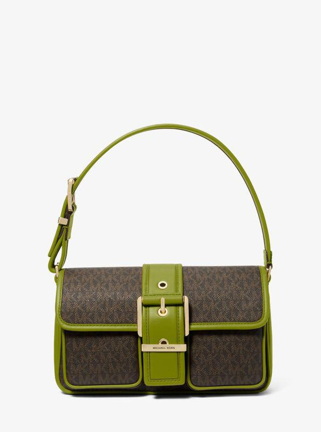 • The modern-yet-classic Colby shoulder bag evokes a cool, New York-inspired sensibility. With its sleek rectangular silhouette and bold buckle accent, this chic style is printed with our Signature monogram and designed to rest seamlessly under your arm. Match your jewelry to the gold-tone hardware.