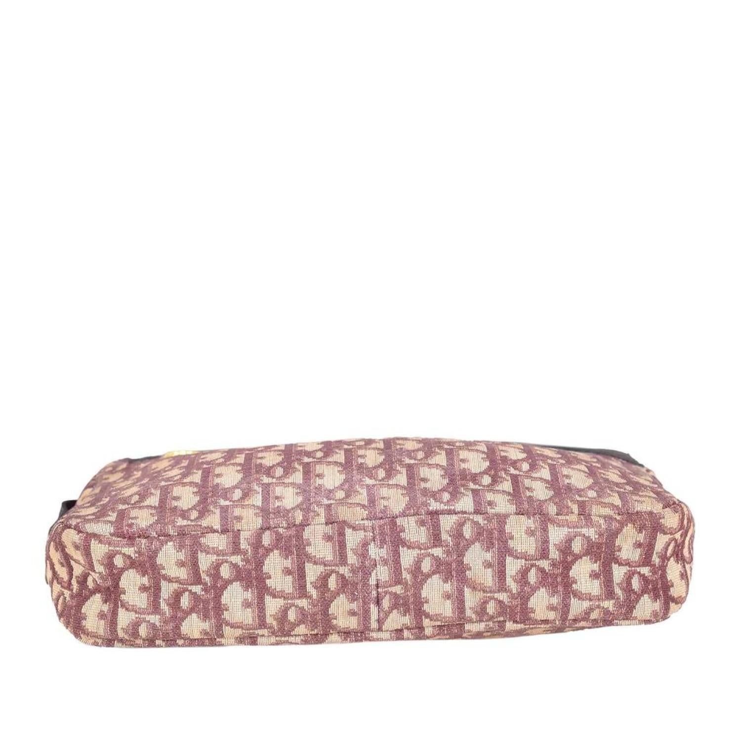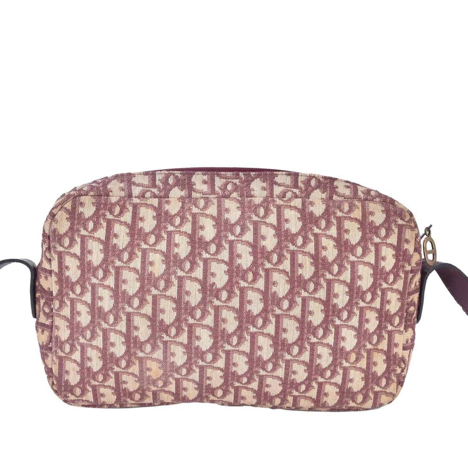 This Dior crossbody bag features a canvas body, a flat leather shoulder strap, and a top zip closure. Dimensions - Length 16 cm; Width 27 cm; Depth 4 cm; Shoulder Drop 43 cm;Color - Red; Material - Fabric x Canvas;Country of Origin - France;Condition notes (see photos) Exterior - staining, scratching, stains on front and handles, worn, rubbing on corners. Interior - lining scratched, worn, hardware rusty and tarnished.Grade - B+