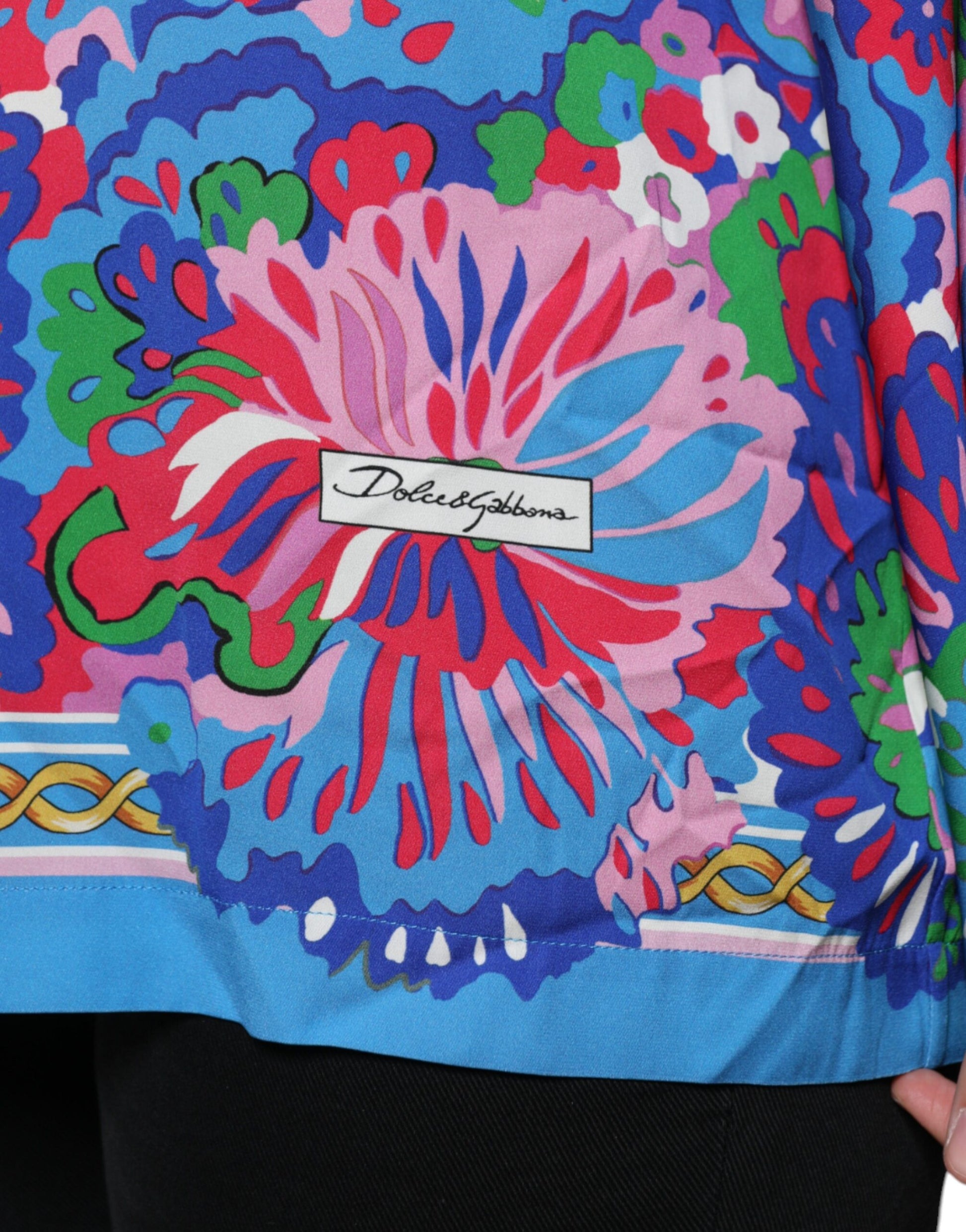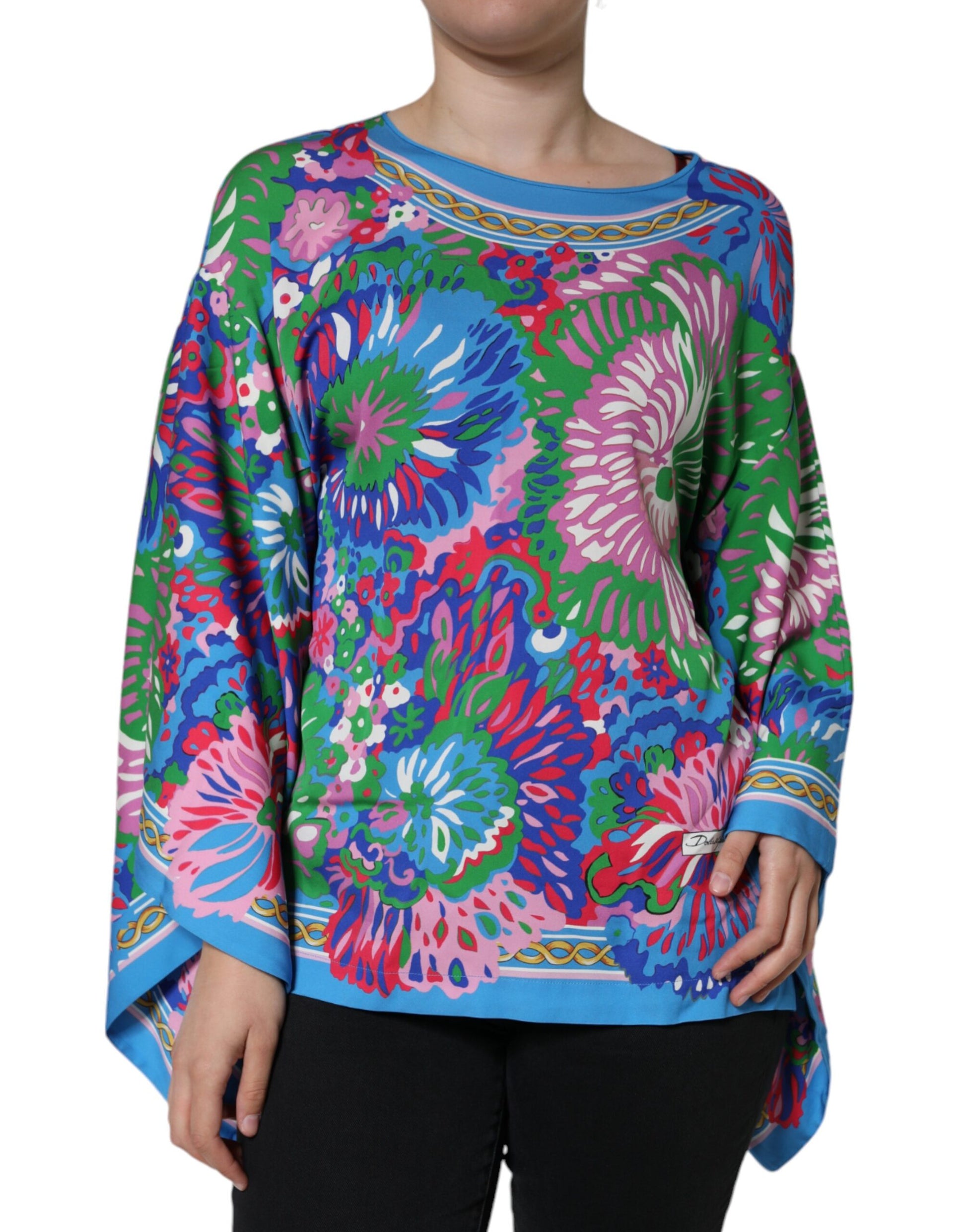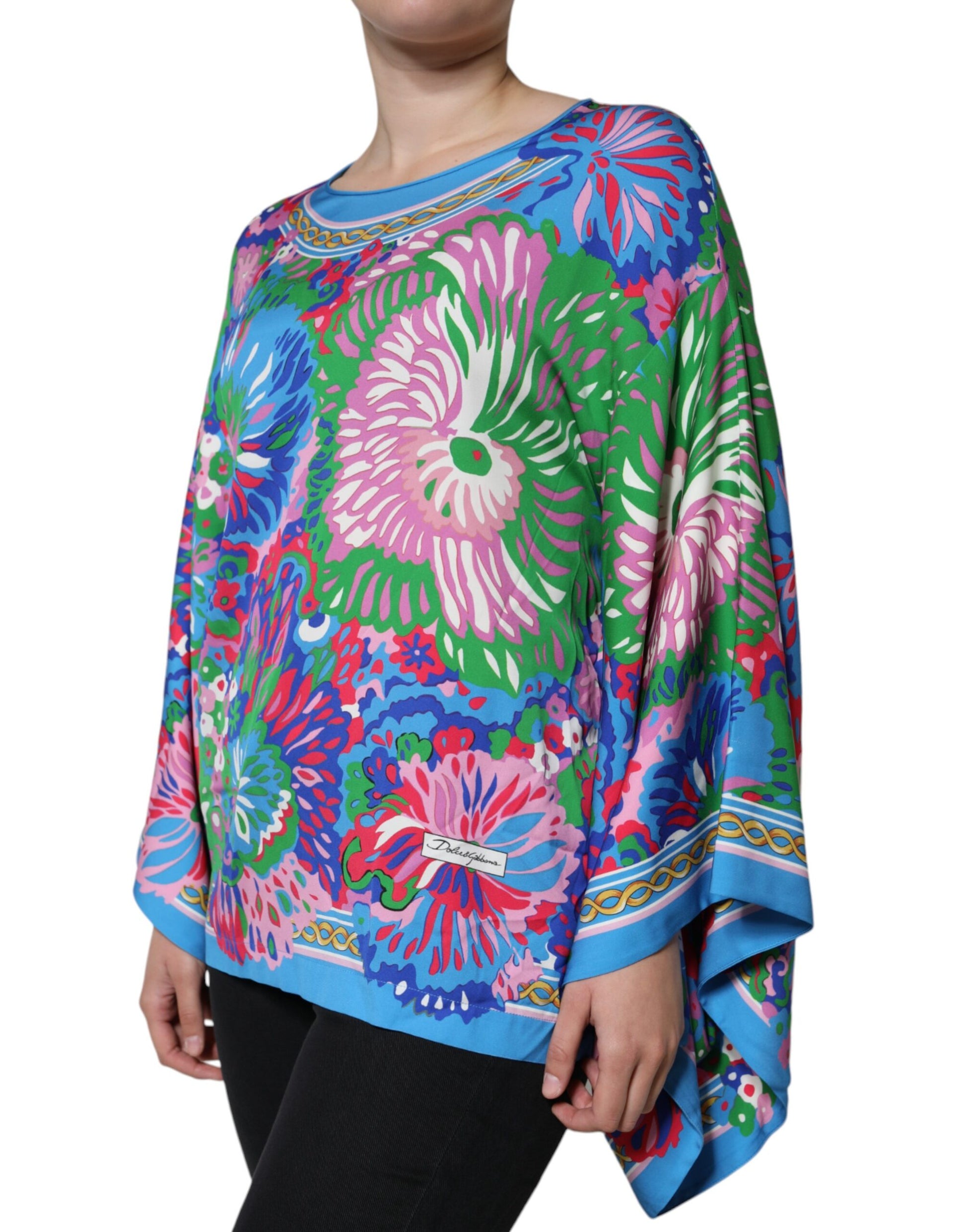 Dolce & Gabbana Multicolor Floral Charmeuse Kimono Sleeve Tunic Top