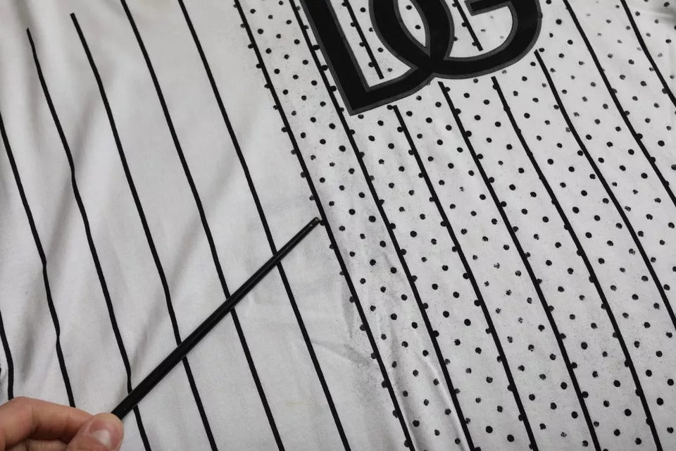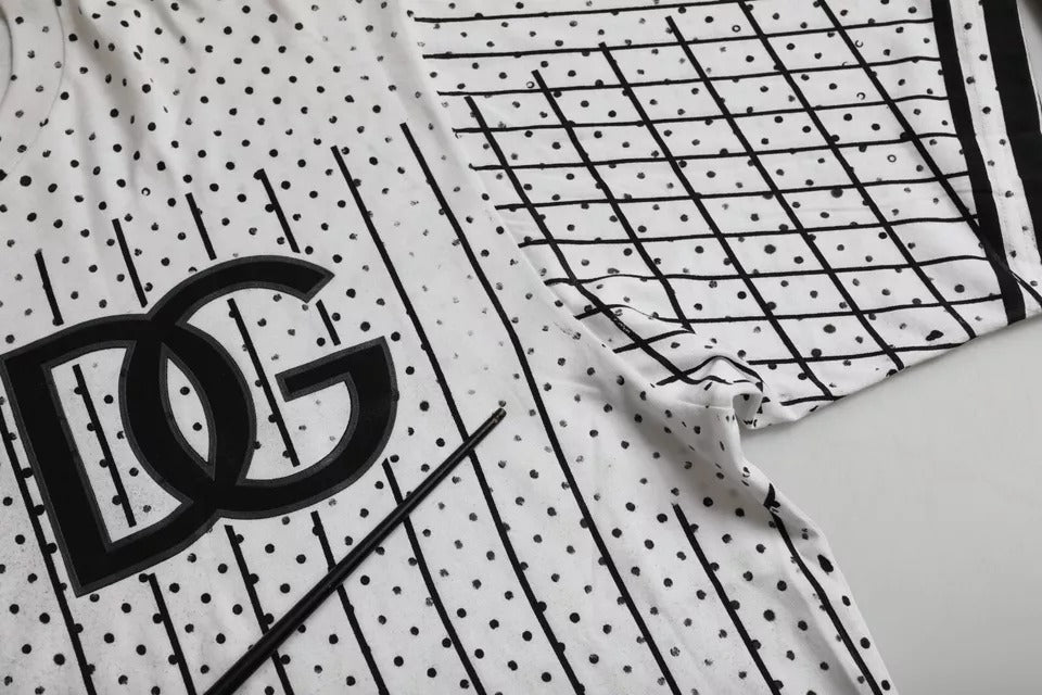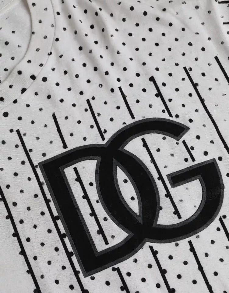 Dolce & Gabbana White Stripes Polka Dot Cotton Crew Neck T-shirt