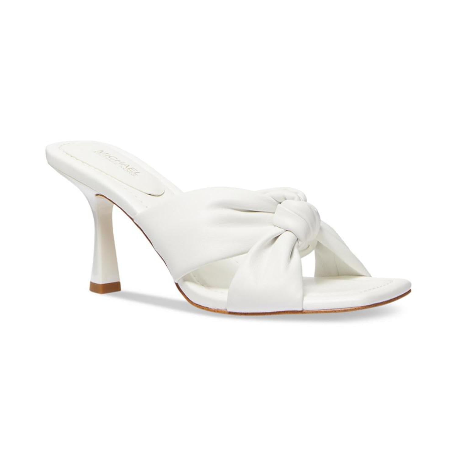 • Sweet yet sophisticated, the Elena heeled sandals from MICHAEL Michael Kors are styled with a knotted strap.