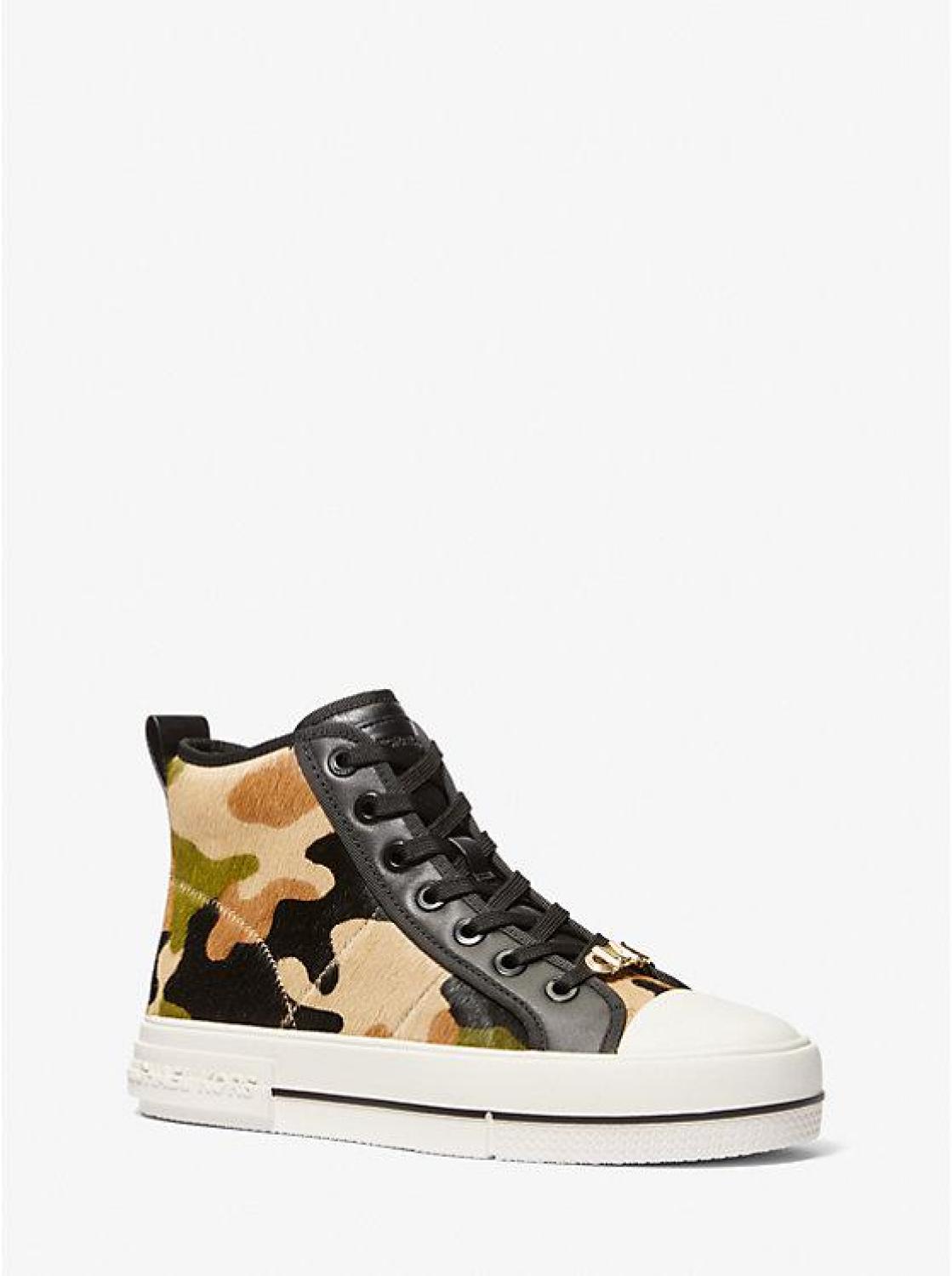 Our high-top Evy sneakers are a modern classic you’ll reach for often. Covered in striking camouflage-print calf hair, they feature contrasting trim for a graphic finish. Wear yours with cropped hemlines to show off the logo hardware at the laces. • Sneaker • Camouflage-print calf hair • 100% calf hair • Trim: 100% rubber • Lining: cotton • Sole: rubber • Round toe • Lace-up fastening • Imported • Sneaker • Camouflage-print calf hair • 100% calf hair • Trim: 100% rubber • Lining: cotton • Sole: rubber • Round toe • Lace-up fastening • Imported