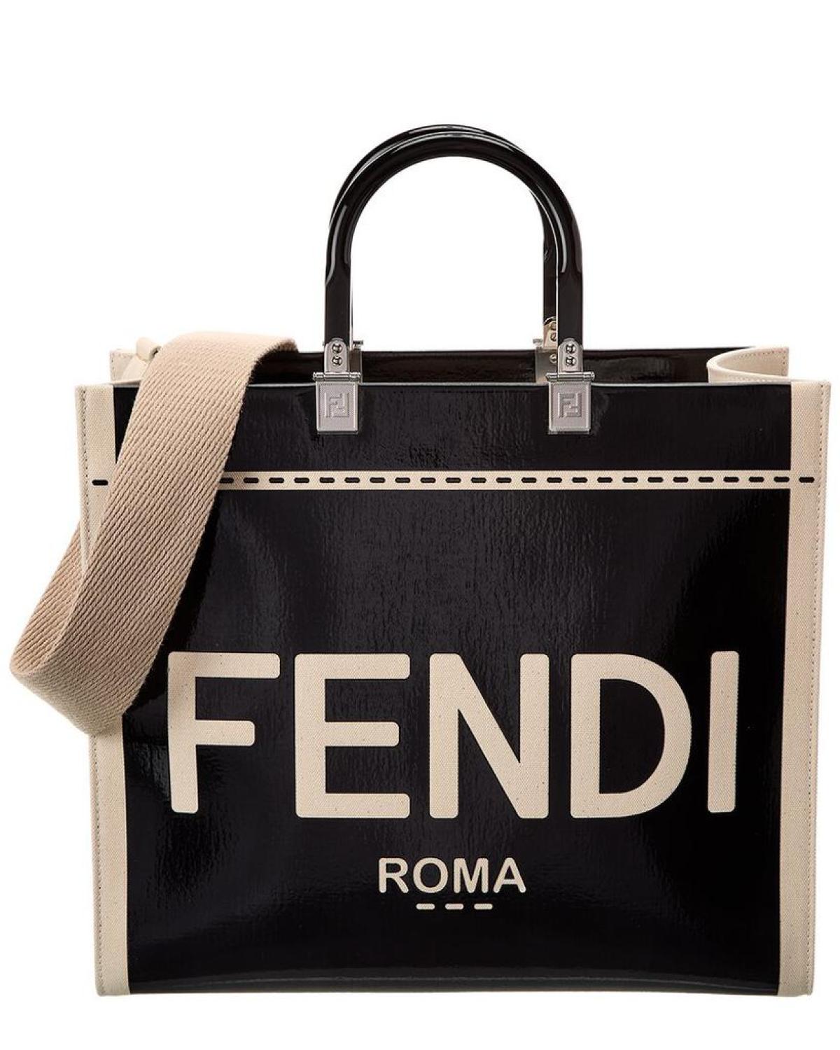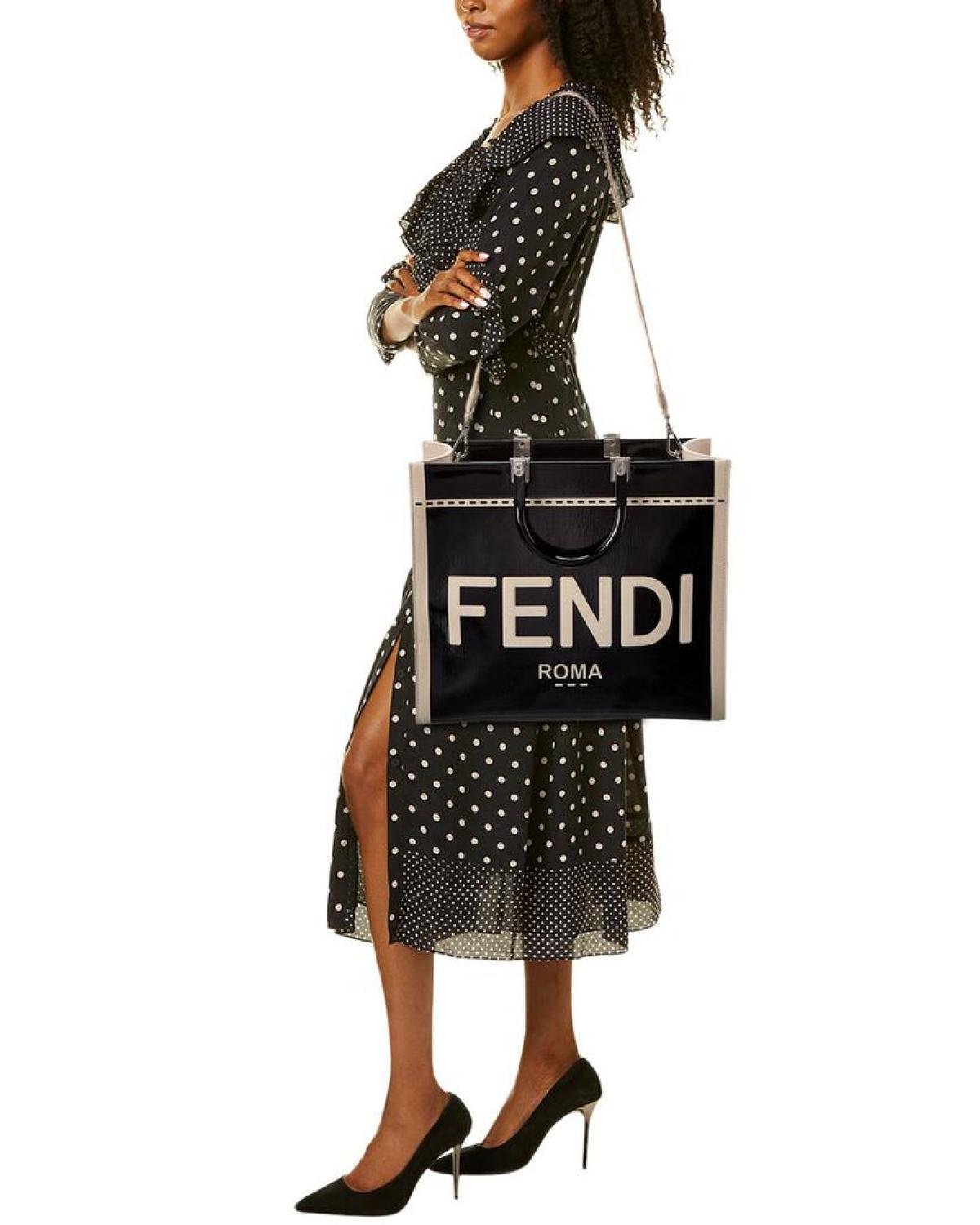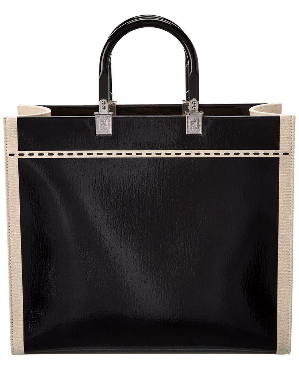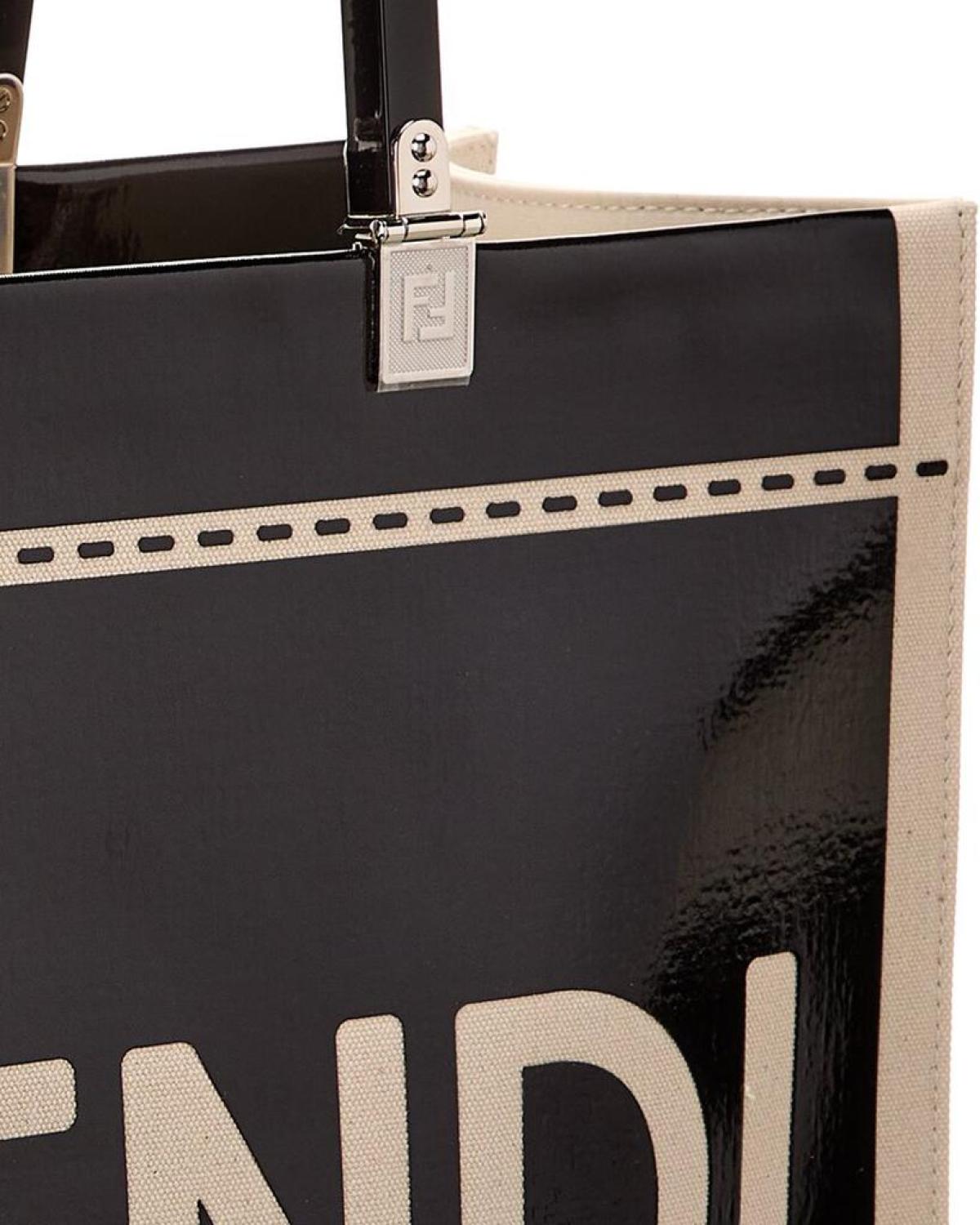• FENDI, the innovative and elegant Italian luxury brand, presents the FENDI Sunshine Medium Patent Tote. This stunning tote bag is made in Italy from black and white patent leather with silver-tone hardware and plexiglass top handles. The interior is lined with microfiber, providing both luxury and durability. Measuring at 16 inches wide, 14 inches high, and 8.5 inches deep, the Sunshine Medium Patent Tote is spacious enough to carry all of your daily essentials. The top handles have a drop of 5 inches, while the removable shoulder strap has a drop of 17.5 inches, allowing for versatile and comfortable wear. The open top design ensures easy access to your belongings. Please note that all measurements were taken by hand and are approximate; slight variations may occur. Rest assured that our products are 100% genuine. In some cases, we purchase merchandise from trusted independent suppliers and not directly from the brand owner. In all cases, we stand by the authenticity of every product sold on our site. Upgrade your handbag collection with the FENDI Sunshine Medium Patent Tote and make a bold fashion statement wherever you go.