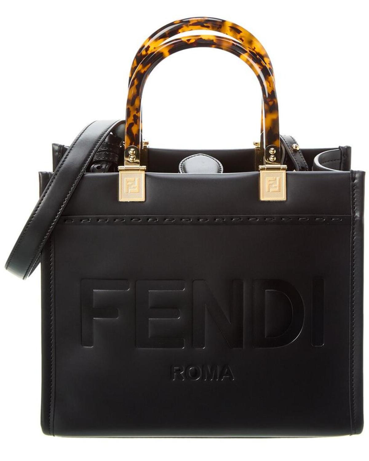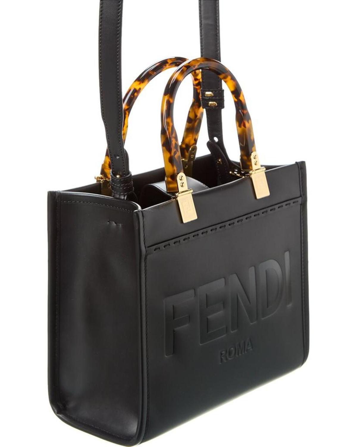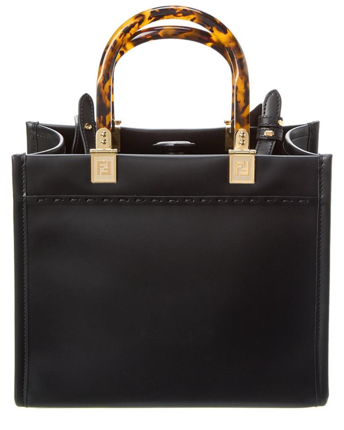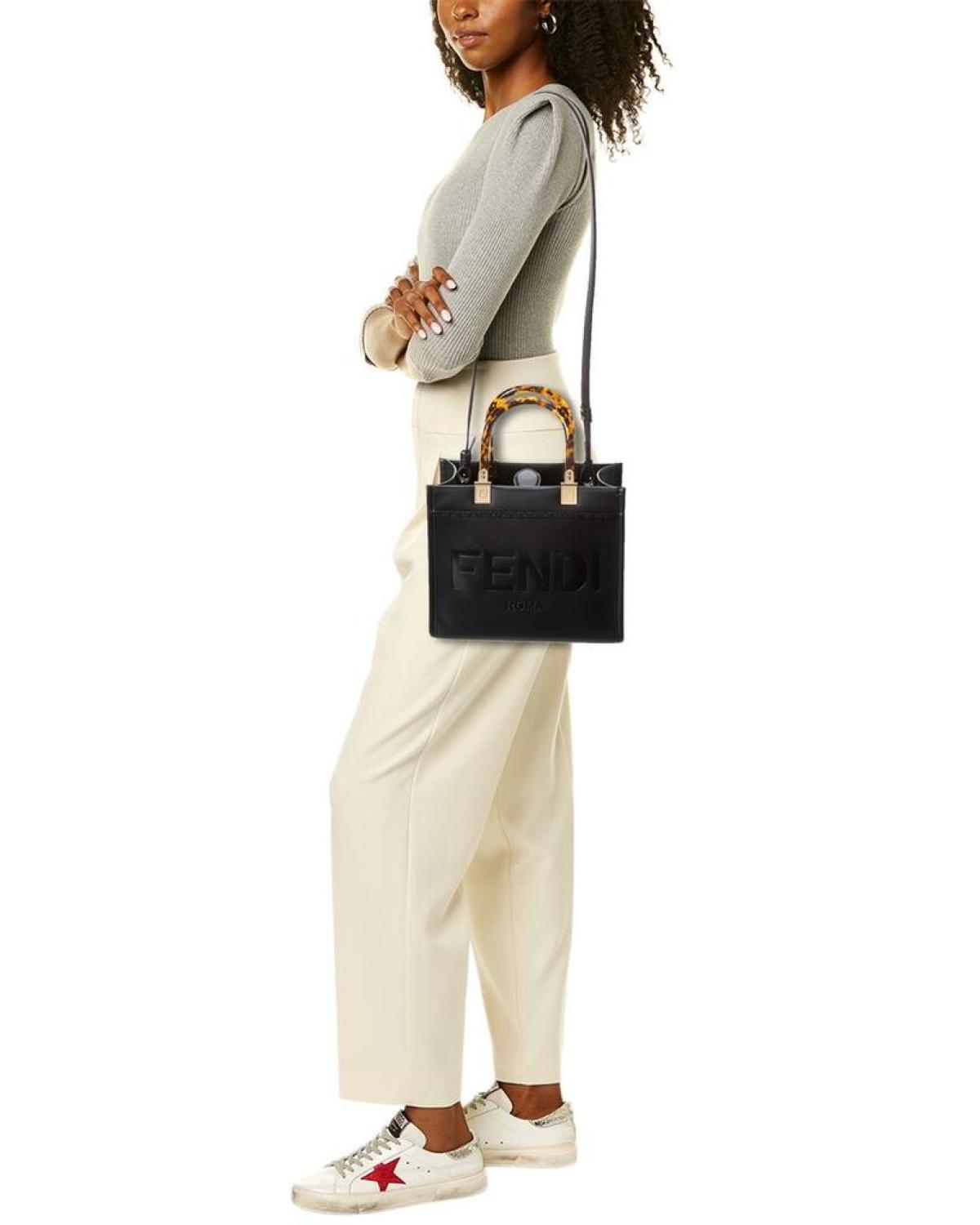 Introducing the FENDI Sunshine Small Leather Tote, a stunning handbag that exudes innovation and elegance, a true reflection of the renowned Italian luxury brand. Crafted with meticulous attention to detail in Italy, this tote is the epitome of sophistication.The sunshine small leather tote features black leather with gold-tone hardware, creating a stylish and timeless look. The plexiglass top handles add a contemporary touch, making a bold statement wherever you go.On the inside, you'll find a luxurious leather lining that not only adds a touch of opulence but also ensures durability and longevity. The interior design details are carefully crafted to provide maximum functionality while maintaining an effortlessly chic appearance.Measuring at 10 inches wide, 8.75 inches high, and 4.75 inches deep, this tote offers ample space to carry your everyday essentials without sacrificing style. The top handles have a comfortable 5-inch drop, while the removable shoulder strap gives you the option for a hands-free carry, dropping 23 inches.Featuring an open top design, accessing your belongings is easy and convenient. Please note that all measurements were taken by hand, and slight variations may occur, adding a unique touch to each piece.Rest assured that our products are 100% genuine. In some cases, we may source merchandise from trusted independent suppliers rather than directly from the brand owner. Nonetheless, we stand by the authenticity of every product sold on our site.Experience the luxury and elegance of FENDI with the Sunshine Small Leather Tote. Elevate your style and make a statement with this exquisite handbag that combines Italian craftsmanship with innovative design.