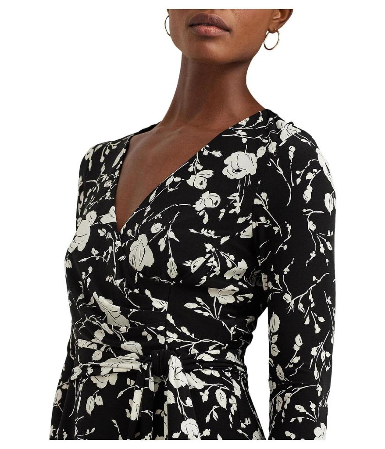 • Your style will be in full bloom in the LAUREN Ralph Lauren® dress featuring a sheath silhouette, flattering ruching and a floral print on a lined jersey fabrication.