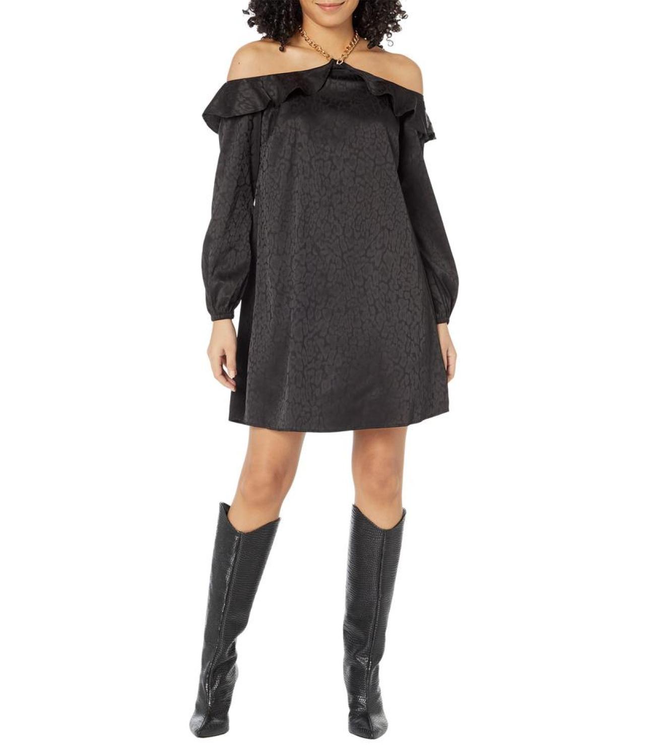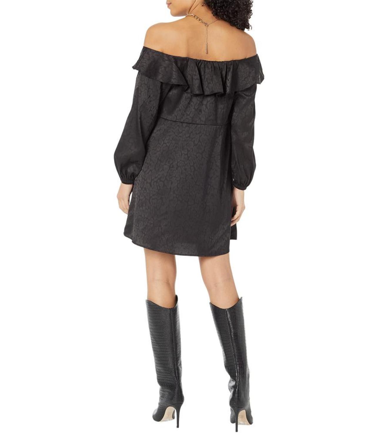 • Get ready for your cocktail party and look gorgeous wearing the MICHAEL Michael Kors® Flounce Off Shoulder Mini Dress.