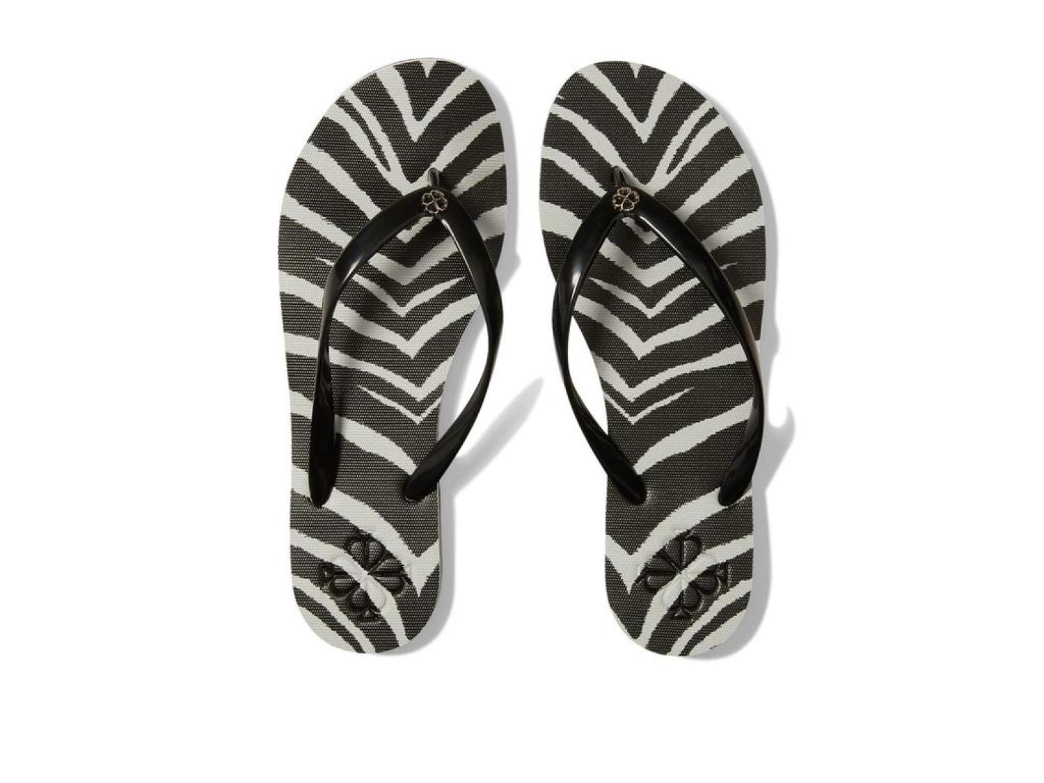 The Kate Spade New York® Flyaway flip flops feature an allover printed style and are perfect for your everyday look. Man-made upper and lining. Foam footbed. Side-on style. Round toe with toe post closure. Elevated platform flats. Man-made outsole. Imported. Product measurements were taken using size 9, width M. Please note that measurements may vary by size. Weight of footwear is based on a single item, not a pair. Measurements: Weight: 4 oz