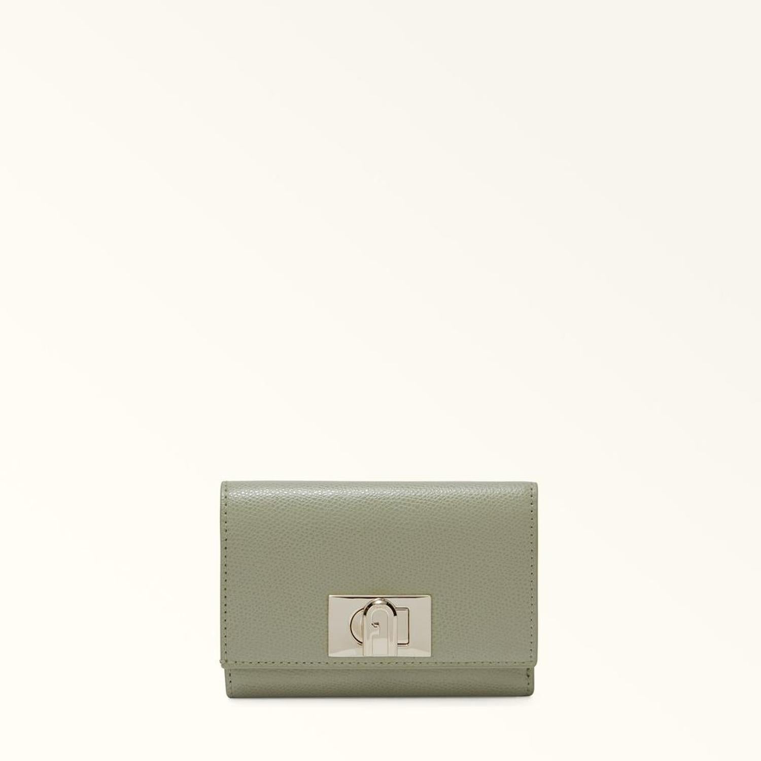 • This Furla 1927 compact wallet is distinctive, being crafted from luxurious printed leather with a grained finish. Soft to the touch and elegant in appearance, it is carefully organised inside to hold banknotes, credit cards and ID. The twist closure on the outside with the iconic Arch logo is testament to the perfect balance of functionality and attention to detail that this piece embodies.