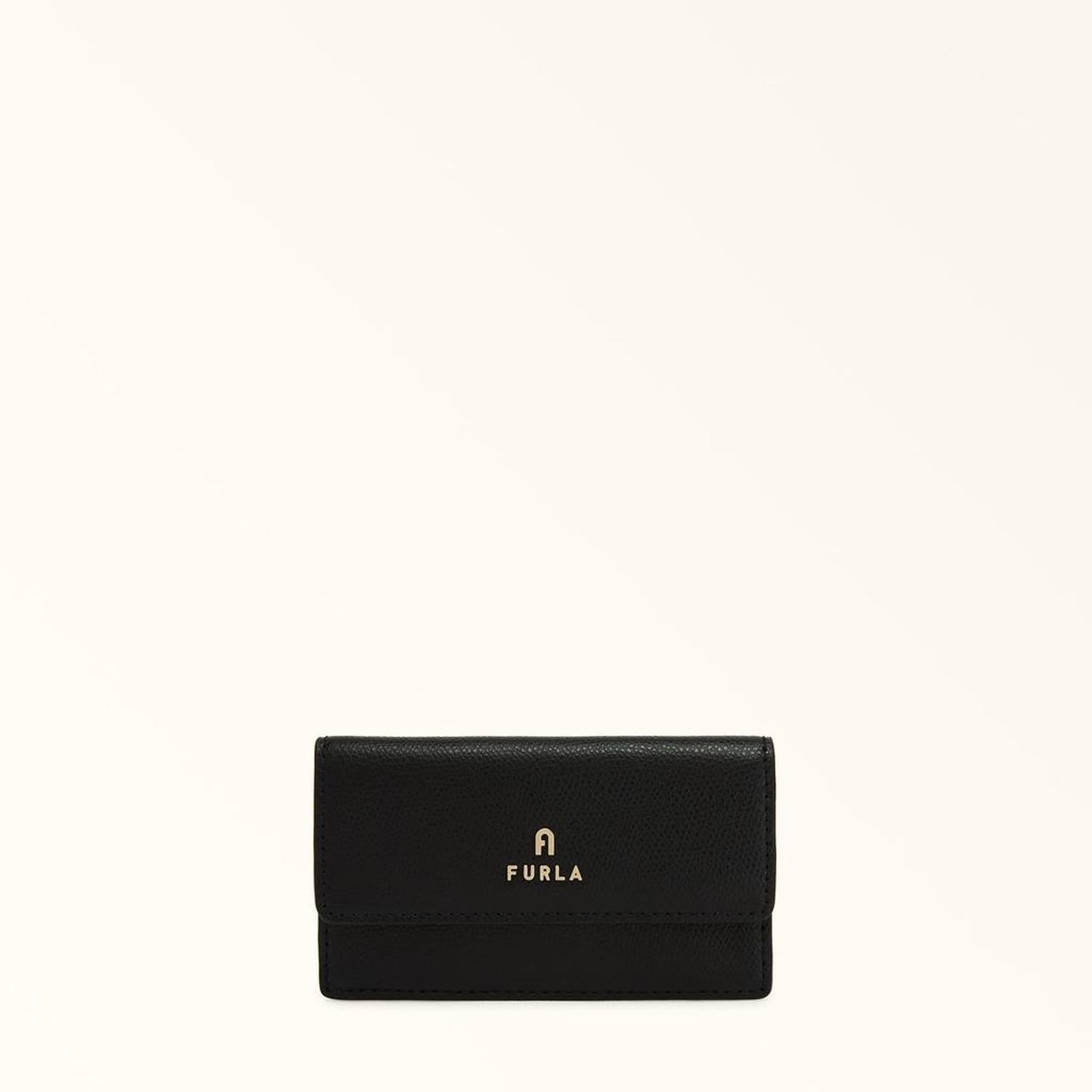 • Skilfully designed to keep cards and ID handy and organised, this Furla Camelia card case is made from elegant leather with a printed finish. This accessory is lightweight, compact and functional, and features a flap and press-stud closure.