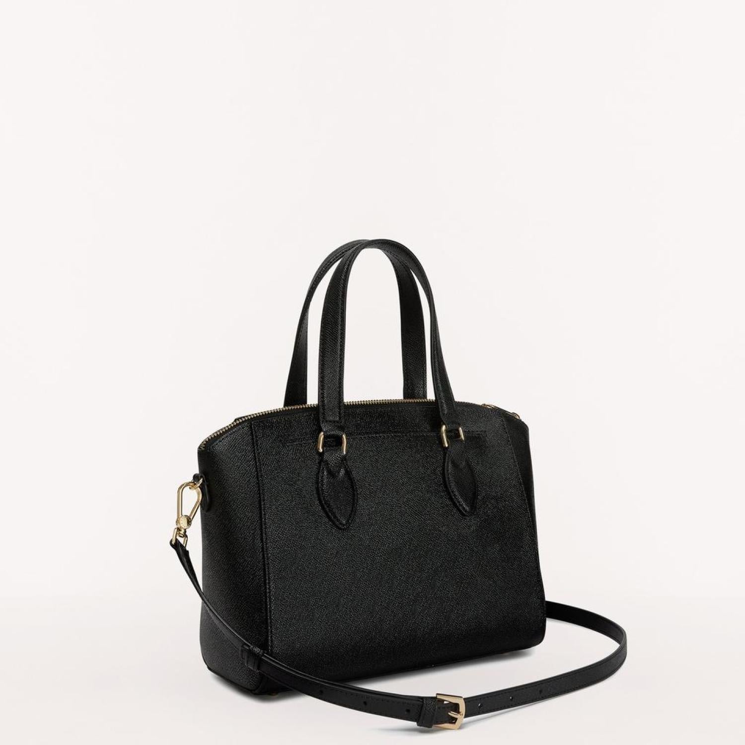 • Furla Minerva is a small satchel bag made from Andromeda calfskin. This piece comes with a handy adjustable and removable leather shoulder strap for on-the-shoulder or crossbody wear. The perfect accessory for keeping personal belongings with you during your free time. - Zipped top closure - One open inner pocket - Furla logo punched on the front - Galvanised light gold finishes