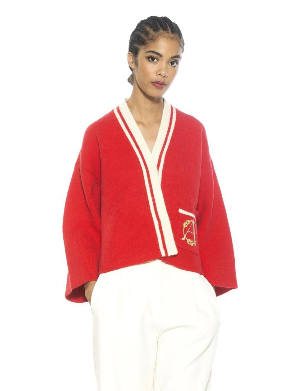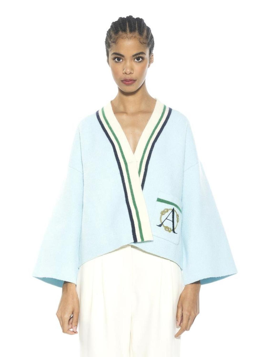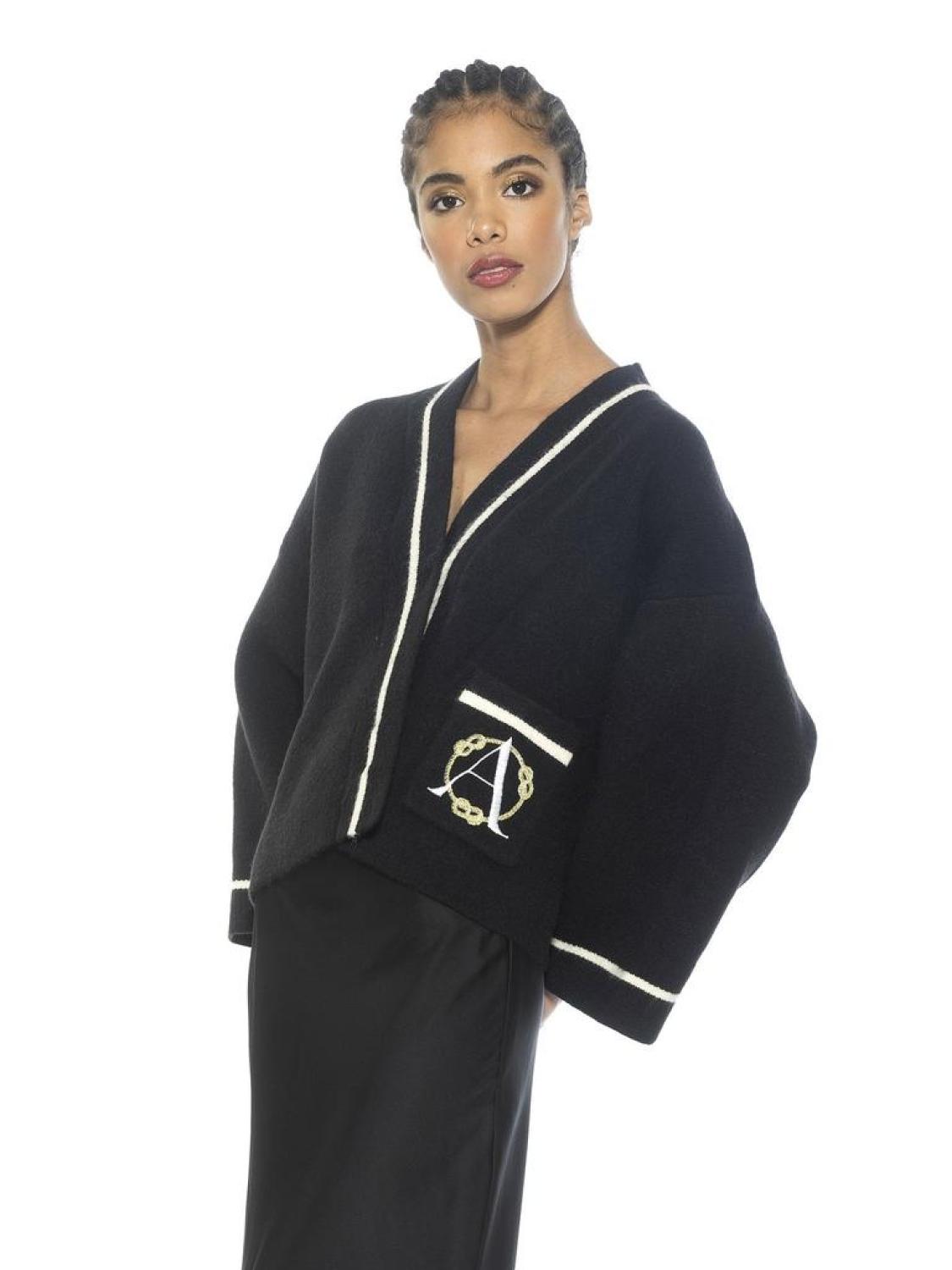 • The Gabbi Jacket showcases sophisticated contrasts in its Trim and Alexia Admor signet on the pocket. Its Wide Sleeves and Knit Cardigan style exude elegance and elevated comfort. Secured by a delicate hook and eye closure, this jacket adds a luxurious touch to any outfit. Contasting Trim Wide Sleeve Alexia Admor signet on pocket Hook and Eye clousure Knit Cardigan Jacket 42% Acrylic, 28% Polyamide, 30% Polyester GABBI FULLY KNIT SHORT JACKET WITH NAUTICAL STRIPE Imported Style T637