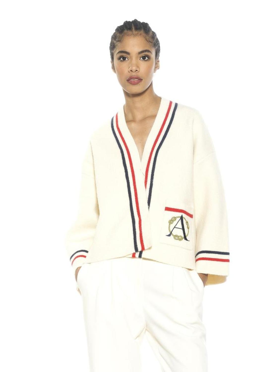 The Gabbi Jacket showcases sophisticated contrasts in its Trim and Alexia Admor signet on the pocket. Its Wide Sleeves and Knit Cardigan style exude elegance and elevated comfort. Secured by a delicate hook and eye closure, this jacket adds a luxurious touch to any outfit. Contasting Trim Wide Sleeve Alexia Admor signet on pocket Hook and Eye clousure Knit Cardigan Jacket 42% Acrylic, 28% Polyamide, 30% Polyester GABBI FULLY KNIT SHORT JACKET WITH NAUTICAL STRIPE Imported Style T637