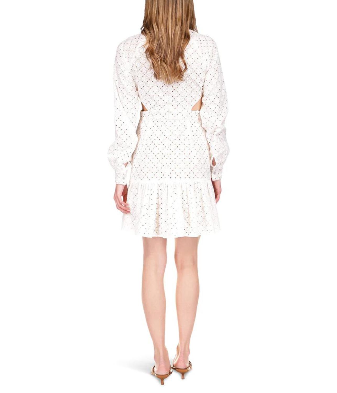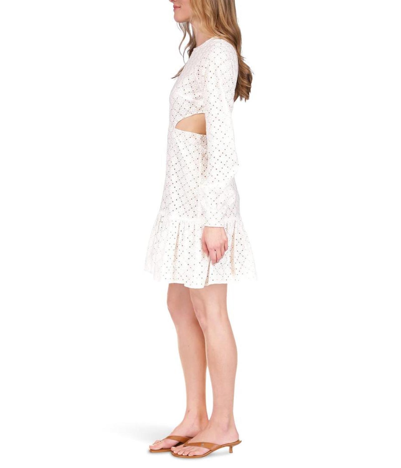 Make a statement by dressing up in the chic and elegant cut-out MICHAEL Michael Kors® Geo Eyelet Dress designed with eyelt-perfection.