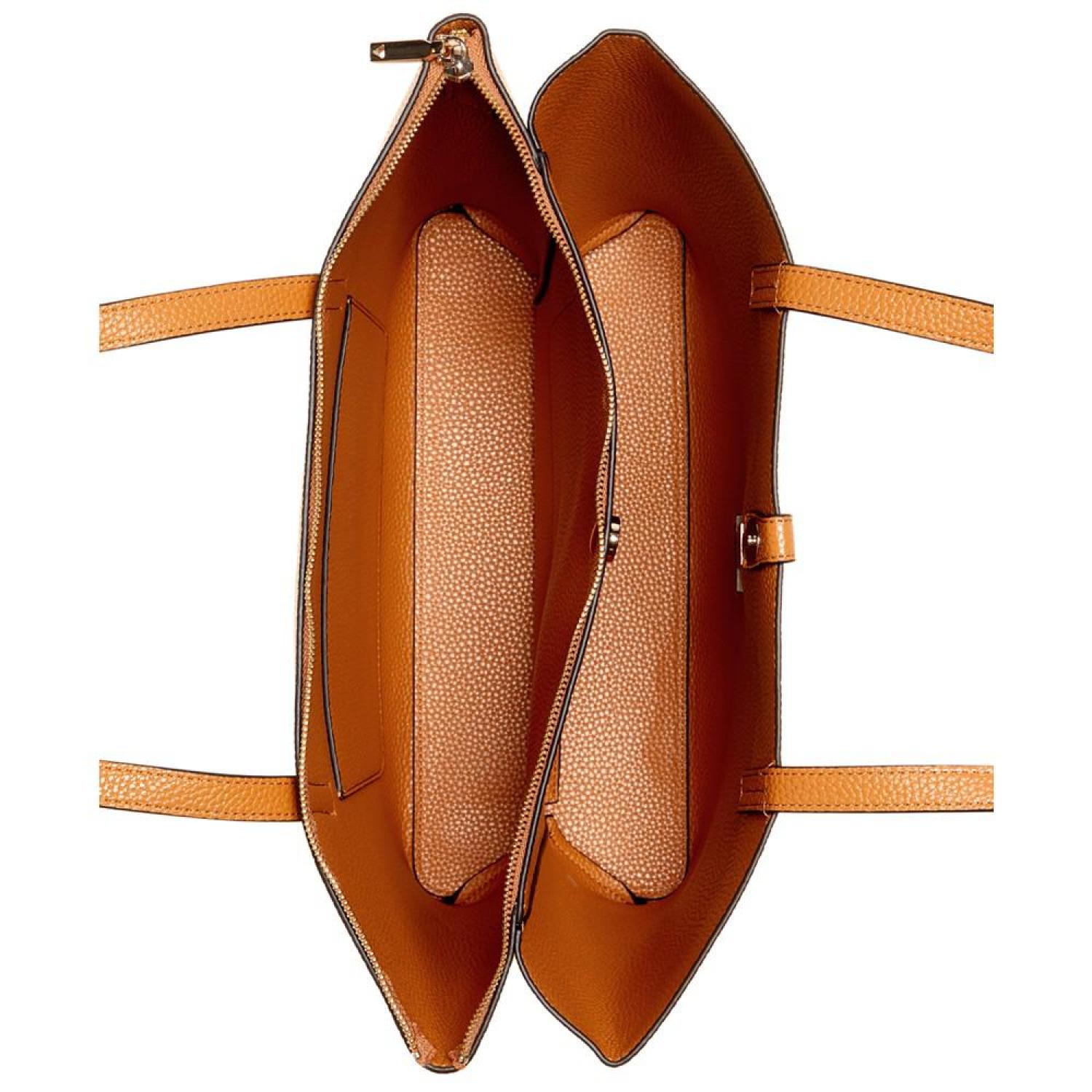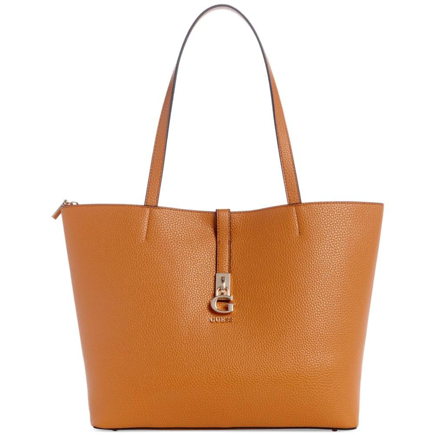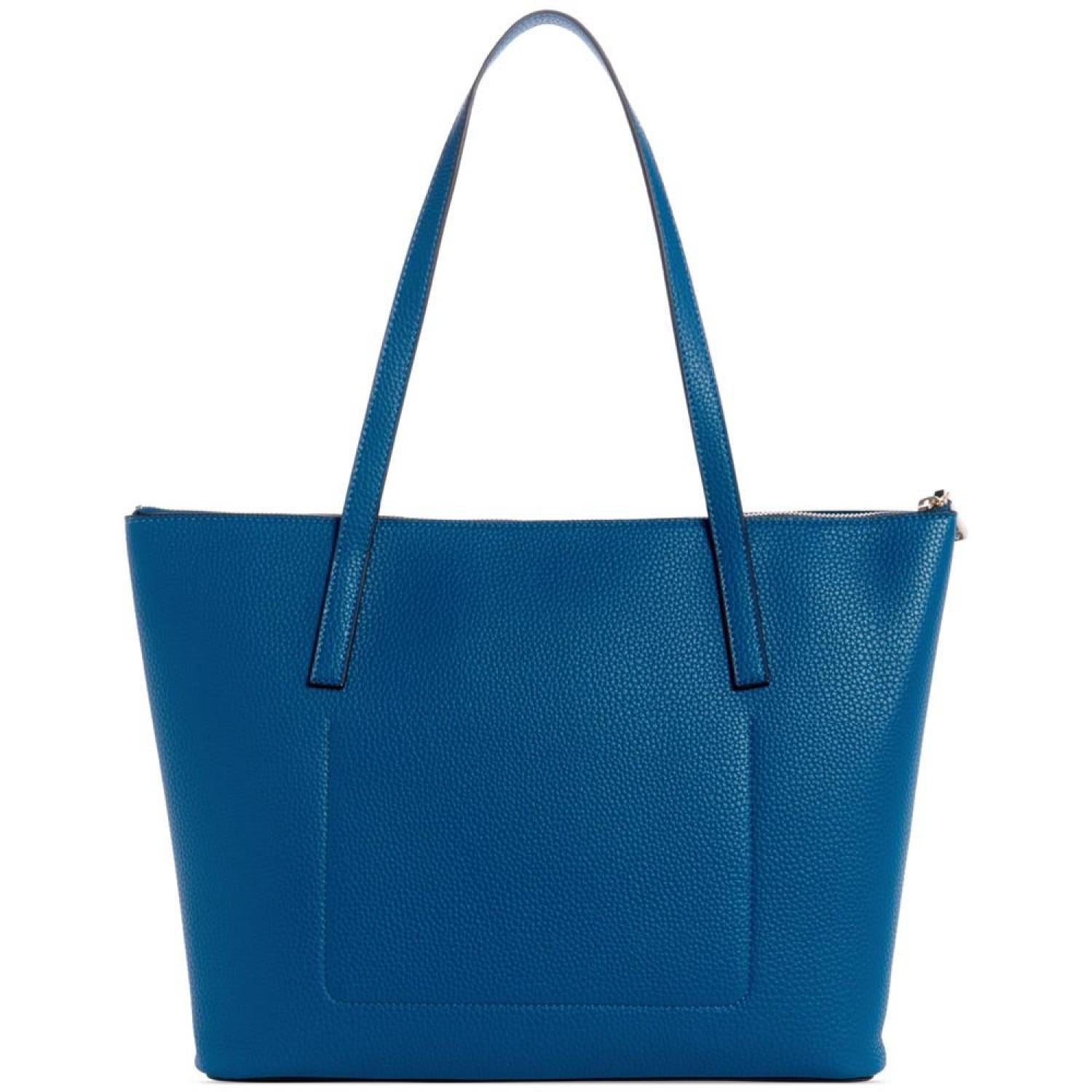This tote by GUESS is perfect for everyday style and organization. Featuring a double compartment interior with both zip and snap closures, it is punctuated with a logo charm for an iconic finish. Extra-large sized bag; 16-1/4"W x 11"H x 5-3/4"D (width is measured across the bottom of handbag) Silhouette is based off 5'9" model 9-3/4"L straps Zip & magnetic snap closures Gold-tone hardware & logo charm Double compartment interior Tablet compatible (std. size 8"-10") Polyurethane Spot clean Imported