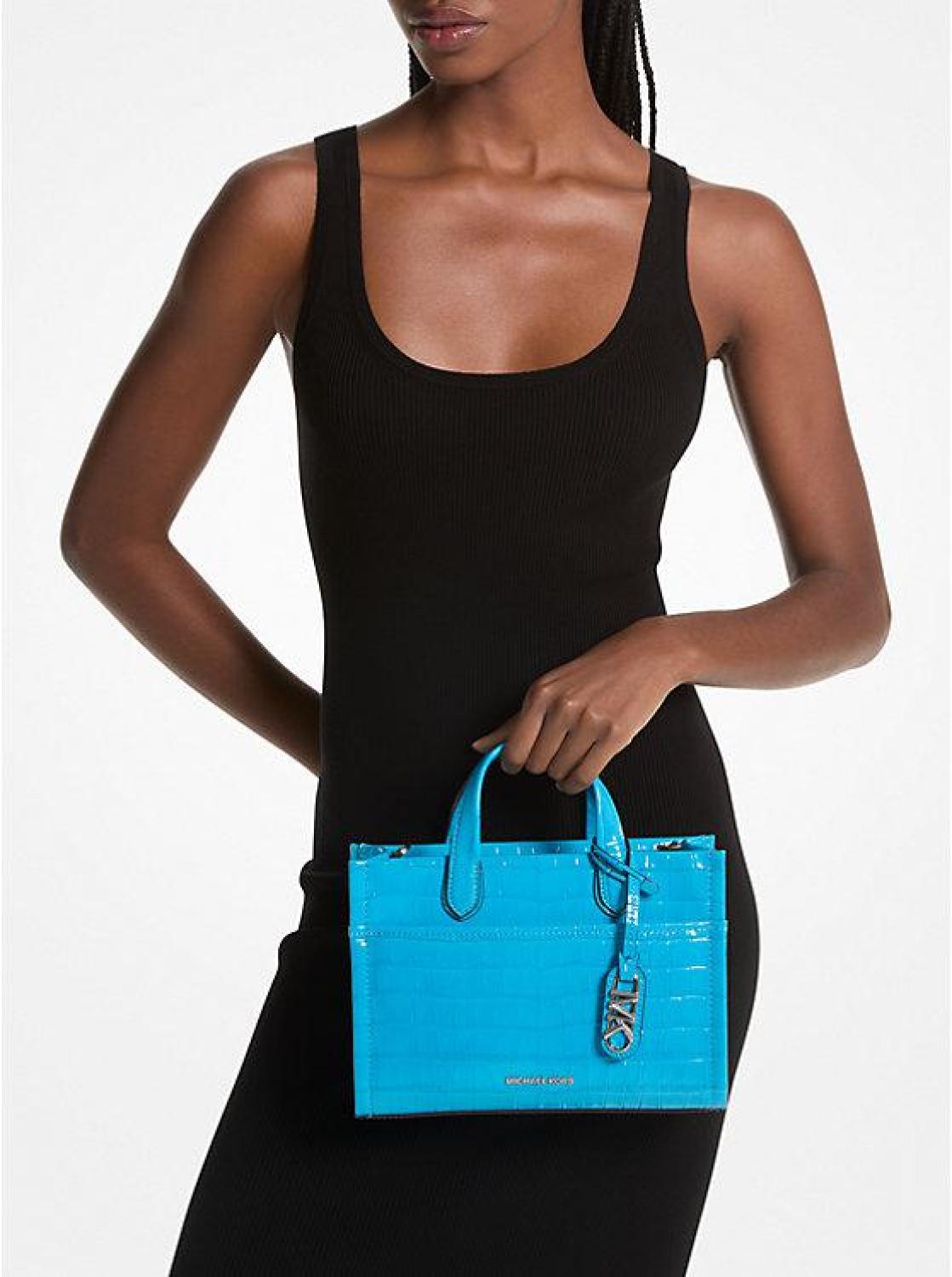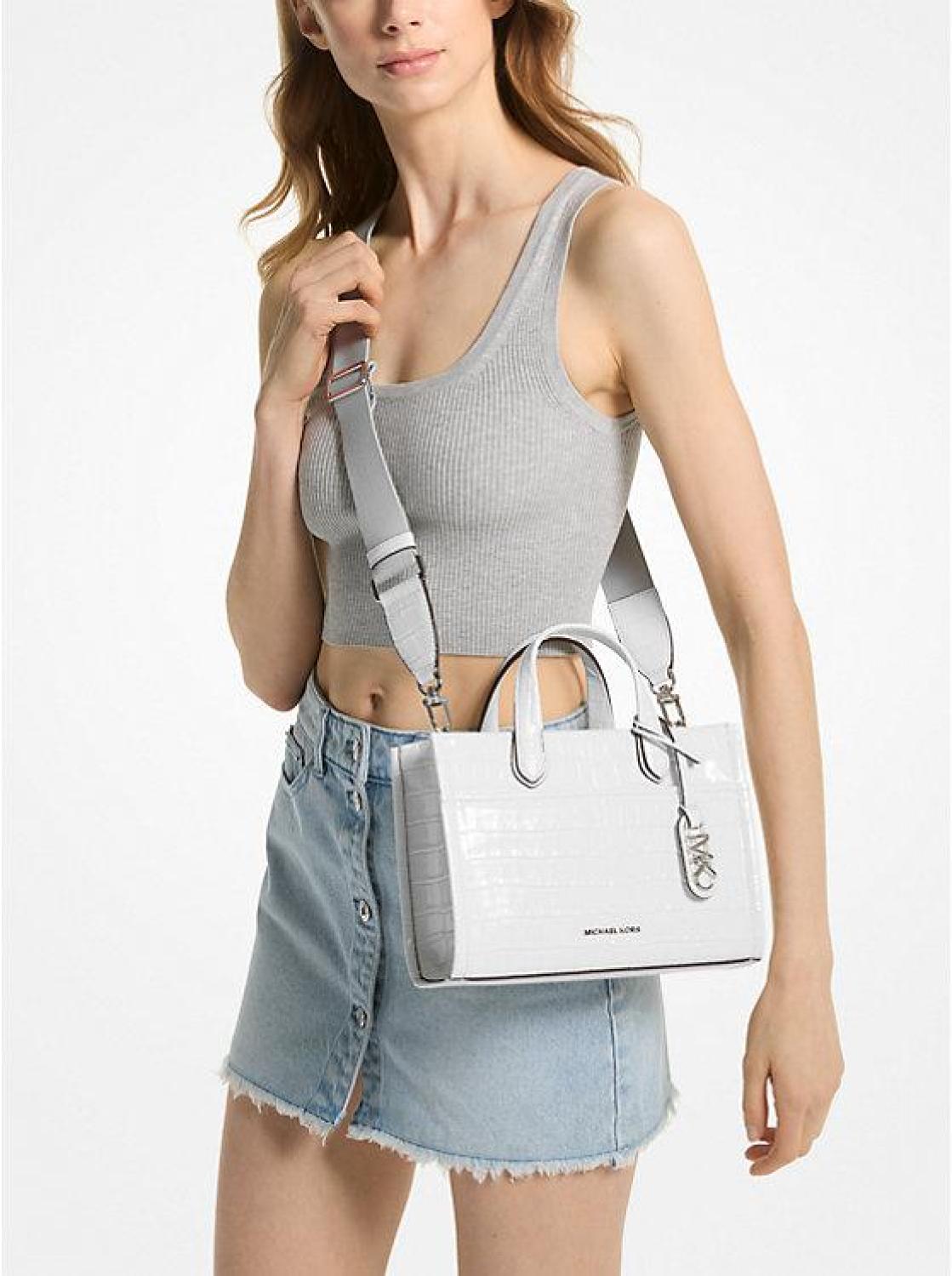 Gigi Small Crocodile Embossed Leather Messenger Bag