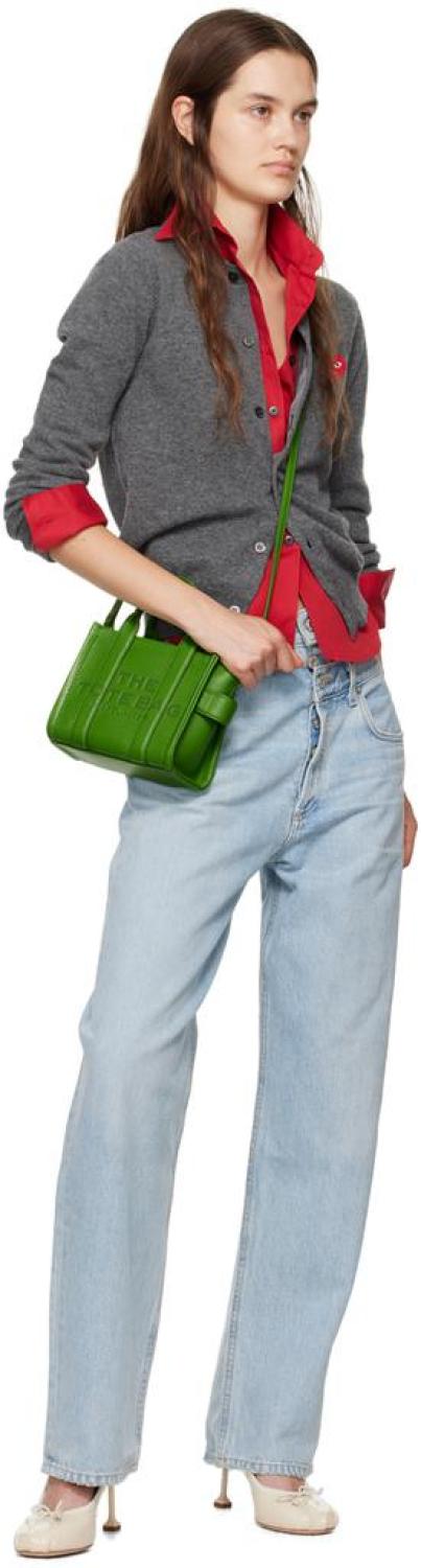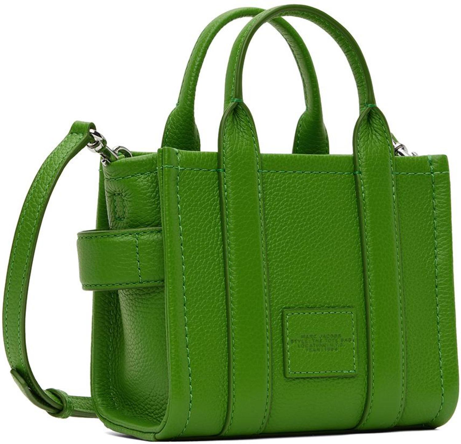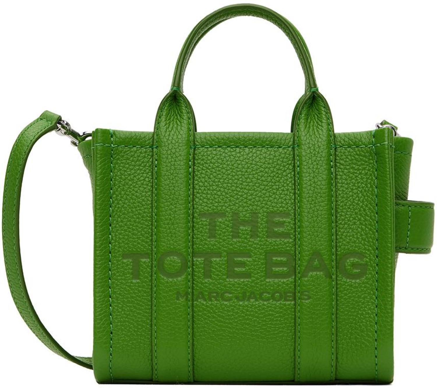 Marc Jacobs Green 'The Leather Crossbody' Tote Grained leather tote in green. · Rolled carry handles · Adjustable and detachable crossbody strap · Logo embossed at face · Carry handle at side · Leather logo patch at back face · Zip closure · Twill lining · Logo-engraved silver-tone hardware · H6" x W7" x D4" Supplier color: Kiwi 100% leather. Made in Viet Nam. 242190F049028