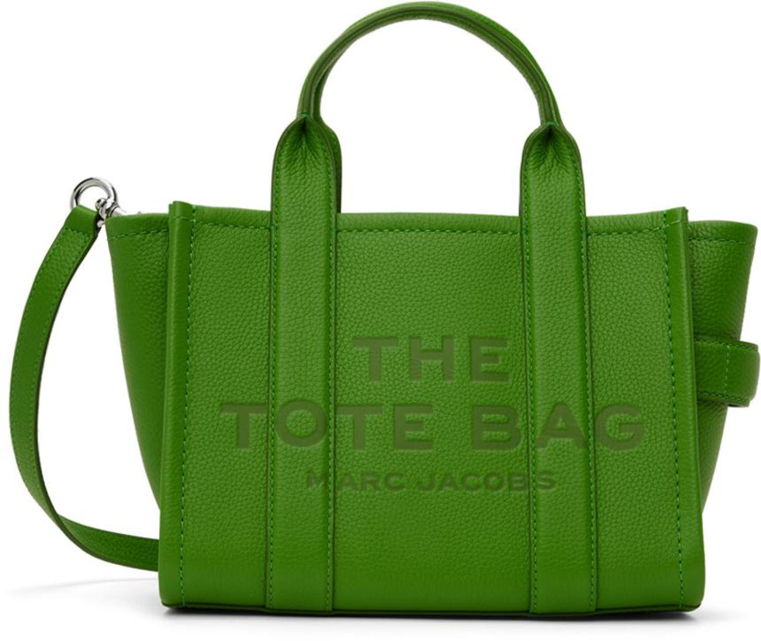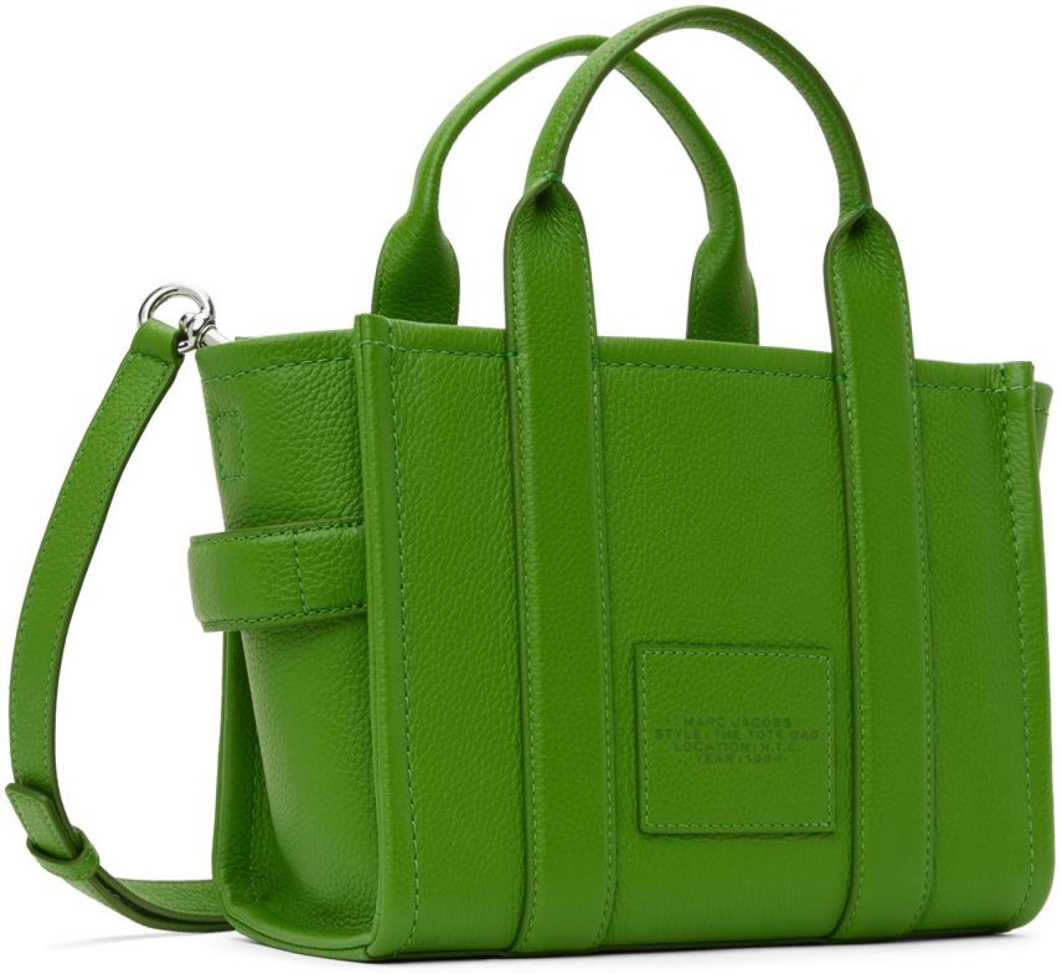 Marc Jacobs Green 'The Leather Small' Tote Grained leather tote in green. · Twin rolled carry handles · Adjustable and detachable crossbody strap · Logo embossed at face · Logo patch at back face · Carry handle at side · Zip closure · Card slot and patch pocket at interior · Twill lining · Logo-engraved silver-tone hardware · H8" x W10" x D3.5" Supplier color: Kiwi Leather. Made in Viet Nam. 242190F049020