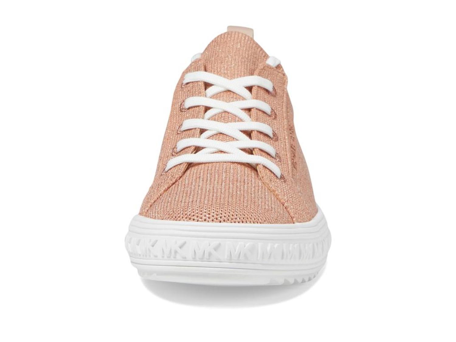 • From the gym to the streets, wear the MICHAEL Michael Kors® Grove Knit Lace Up and transition seamlessly. Crafted from polyester upper, breathable textile lining and textile insole, this pair of shoes features a logo-accented rim around the sole, round toe silhouette, lace-up closure, cushioned footbed, and back pull tab.