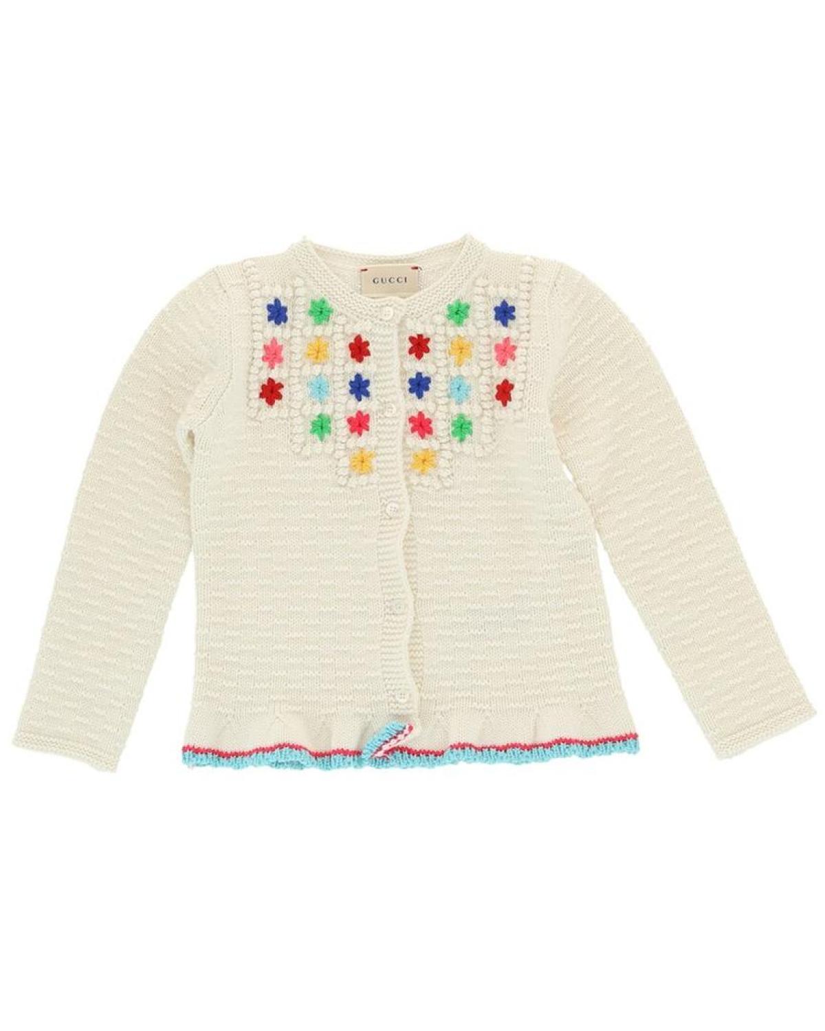 Introducing the Gucci Floral Knit Sweater, a must-have addition to your little girl's wardrobe. This exquisite piece, crafted by the renowned brand Gucci, will bring a touch of luxury and elegance to her everyday outfits.The Gucci Floral Knit Sweater is designed to impress with its timeless appeal and impeccable craftsmanship. Made in Italy, this sweater features a stunning white magnolia floral knit pattern that adds a delightful feminine touch. The button-up closure adds both style and practicality, allowing for easy wearing and removal.Crafted from a blend of 53% cotton and 47% cashmere, this sweater offers a supremely soft and comfortable feel. The high-quality materials ensure durability, ensuring that your little one can enjoy this sweater for seasons to come. Please note that hand washing is recommended to maintain its pristine condition.This Gucci Floral Knit Sweater is not just a fashion statement; it is a reflection of the brand's dedication to excellence. Gucci is synonymous with Italian luxury redefined, and this product lives up to that reputation. With its eclectic and coveted designs, Gucci has become a global icon, and this sweater is no exception.We assure you that all our products, including this Gucci Floral Knit Sweater, are 100% genuine. While in some cases we purchase merchandise from trusted independent suppliers, we always stand by the authenticity of every product sold on our site.Give your little girl the gift of style and luxury this Christmas with the Gucci Floral Knit Sweater. Order yours today and enjoy the timeless beauty that only Gucci can provide.