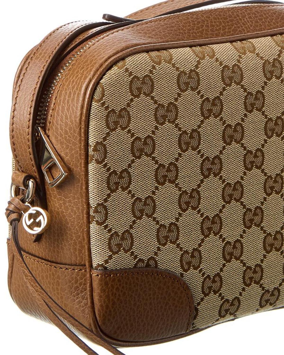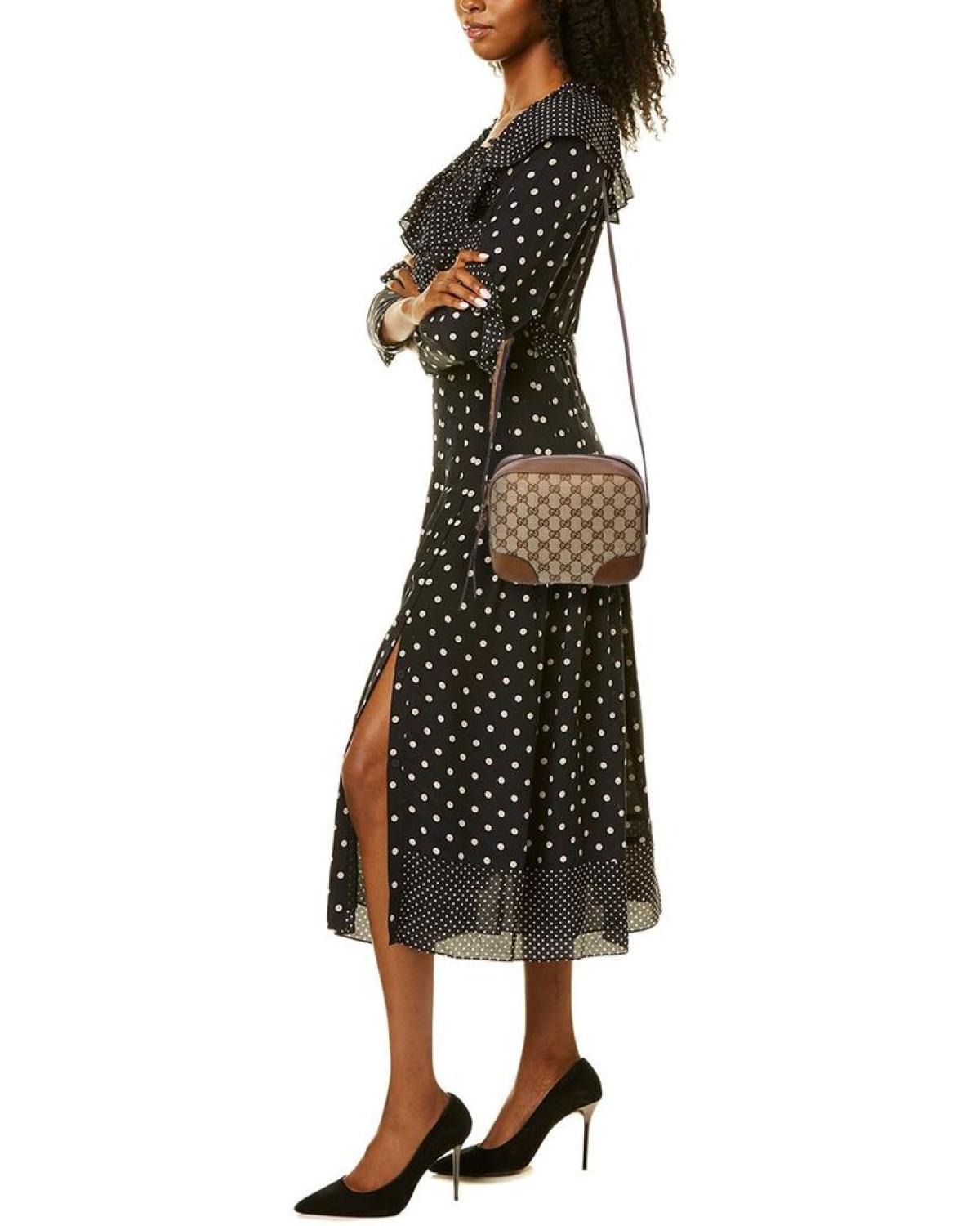 Introducing the Gucci GG Canvas & Leather Crossbody, a must-have accessory for the modern woman who appreciates Italian luxury. Crafted with impeccable attention to detail, this crossbody bag showcases the iconic GG canvas and smooth leather, complemented by light fine gold hardware.Measuring 8.5 inches wide, 7 inches high, and 2.75 inches deep, this compact yet functional bag is designed to fit all your essentials. The adjustable shoulder strap, with a drop of 27 inches, allows you to wear it comfortably over your shoulder or across your body.Step into elegance with the zipper closure, ensuring your belongings are secure. Inside, you'll find a stylish canvas lining, an interior pocket for organization, and convenient leather card slots.Please note that all measurements provided are approximate and may vary slightly due to hand measuring. We assure you that our products are 100% genuine. While we sometimes source merchandise from trusted independent suppliers, please rest assured that the authenticity of every product sold on our site is guaranteed.Embrace the timeless allure of Gucci and redefine your style with this exquisite GG Canvas & Leather Crossbody. Experience Italian craftsmanship at its finest, for those who appreciate eclectic and coveted fashion. Made in Italy, this crossbody bag is a statement of impeccable taste and an investment in luxury.Price as marked. Shop now and indulge in the allure of Gucci's iconic women's handbags in the crossbody-bags category.