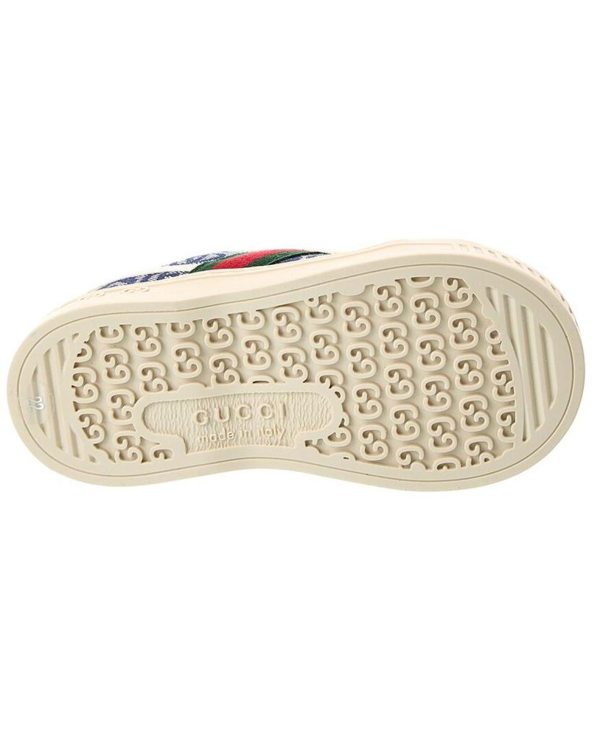 Introducing the Gucci GG Canvas Sneaker, the perfect addition to your little girl's shoe collection. Crafted with Italian luxury redefined, this eclectic and coveted brand brings you a truly stylish and comfortable shoe for casual wear.Please note that the size selections for this shoe are European, so for US conversions, please reference the provided size chart to ensure the perfect fit. These sneakers are meticulously made in Italy, guaranteeing the highest quality craftsmanship. The blue GG canvas and dark silver hardware, along with the signature red and green webbing detail, add a touch of sophistication to this casual design.Featuring a convenient lace-up closure, these sneakers are easy to put on and take off. The lightly padded insole provides extra comfort for your child's everyday activities. The rubber sole with traction ensures stability and support, making it an ideal choice for active kids.Rest assured, our products are 100% genuine. While in some cases we may purchase merchandise from trusted independent suppliers, not directly from the brand owner, we stand by the authenticity of every product sold on our site.Experience luxury and style with the Gucci GG Canvas Sneaker for kids. Shop now and elevate your child's footwear collection with this fashion-forward choice.